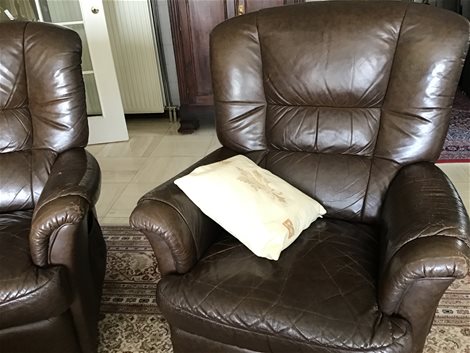 2 lederen electrice relax zetels,donker bruin werken nog perfect,wel beschadigd
