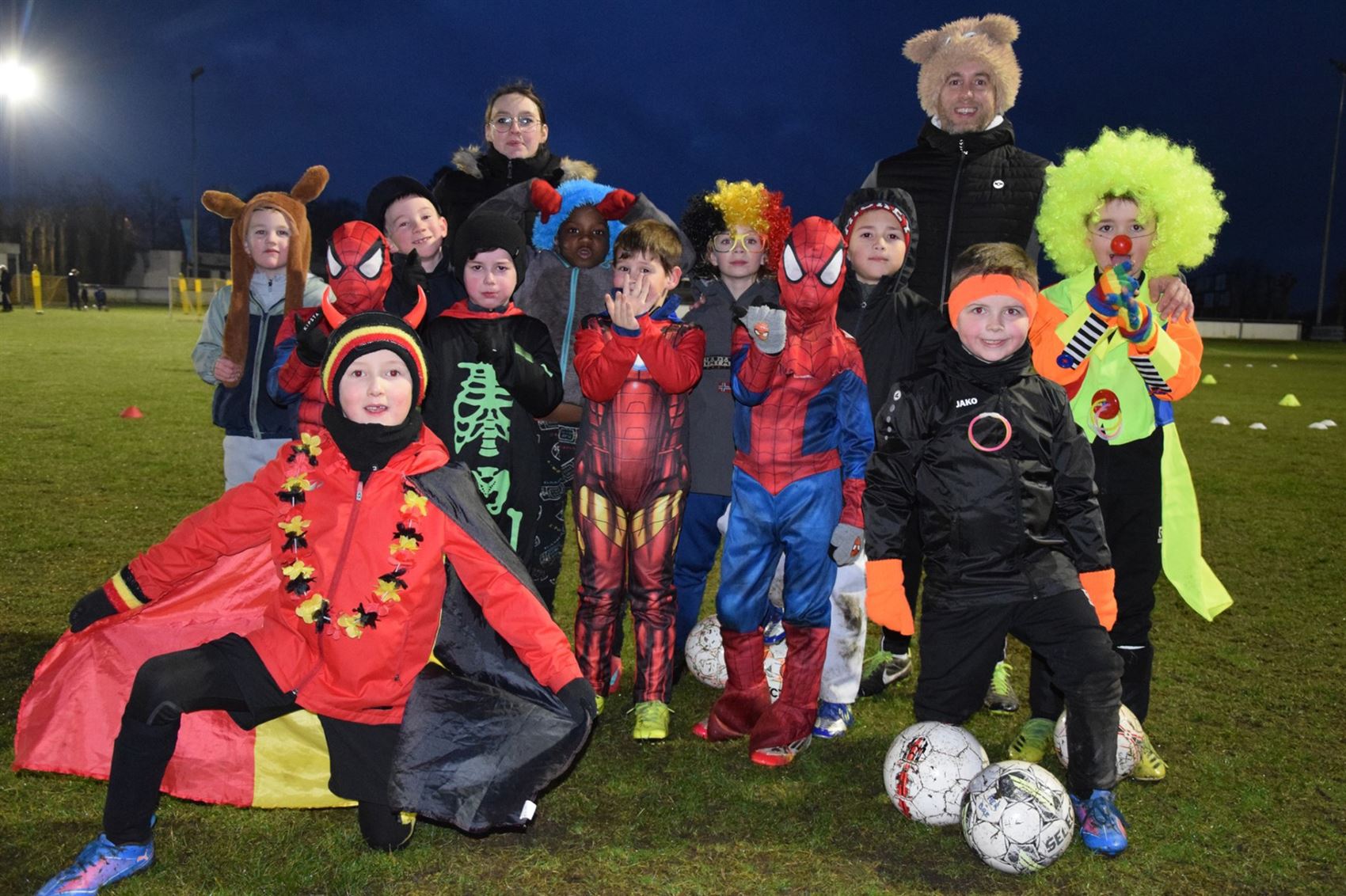 De jongens en meisje kwamen verkleed naar de training maar tussen het lachen en dollen door werd er ook fanatiek getraind op deze speciale editie van hun wekelijkse training.