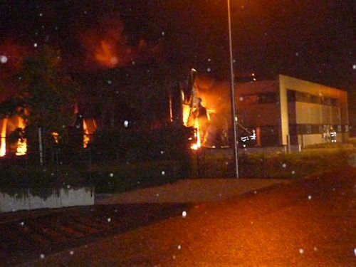 Trends2Com aan de Remise volledig vernield. Het vuur brak even na 5 uur uit. Een werknemer verwittigde de brandweer. Het korps van Budel kreeg versterking van de brandweer van Lommel en Bree, terwijl diverse andere korpsen bluswater aanvoerden. In totaal waren ongeveer 60 brandweerlui in de weer om de brand te blussen. Ze konden verhinderen dat het aanpalende bedrijf Noten ook werd vernield; toch liep het wat brandschade op. Rond 7 uur was men de brand meester, al wordt er nog enige tijd nageblust.