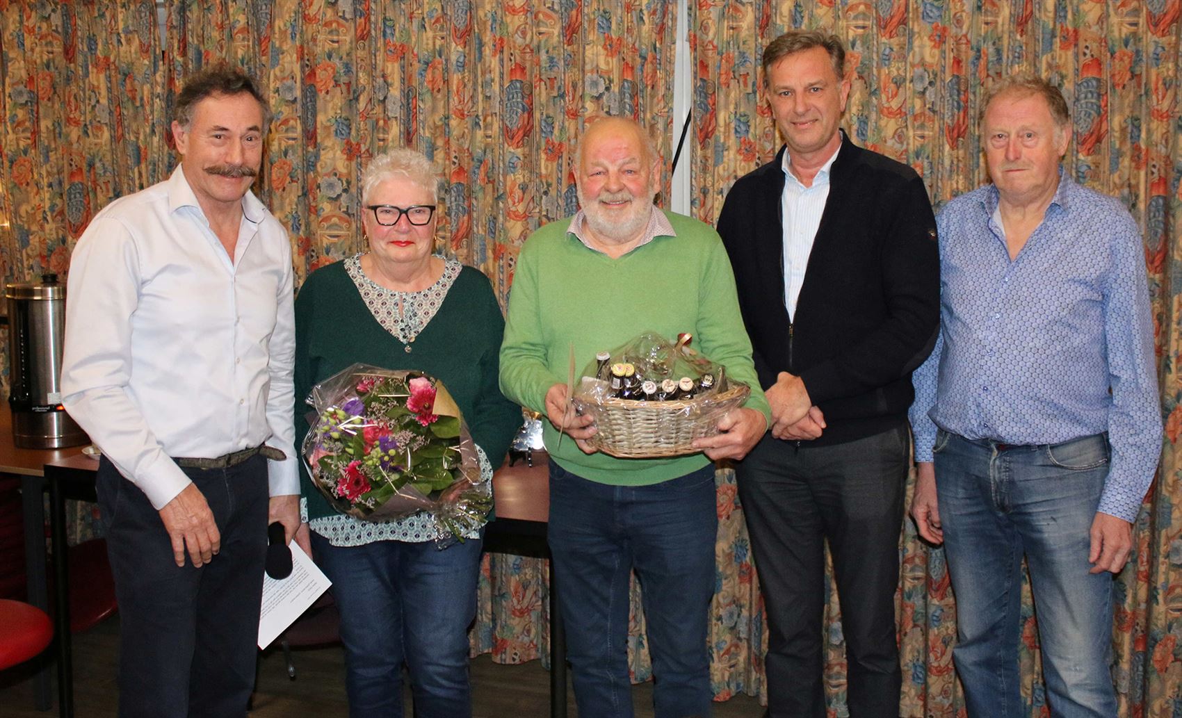 René Winters in de bloemetjes gezet als afscheidnemend secretaris. Samen met