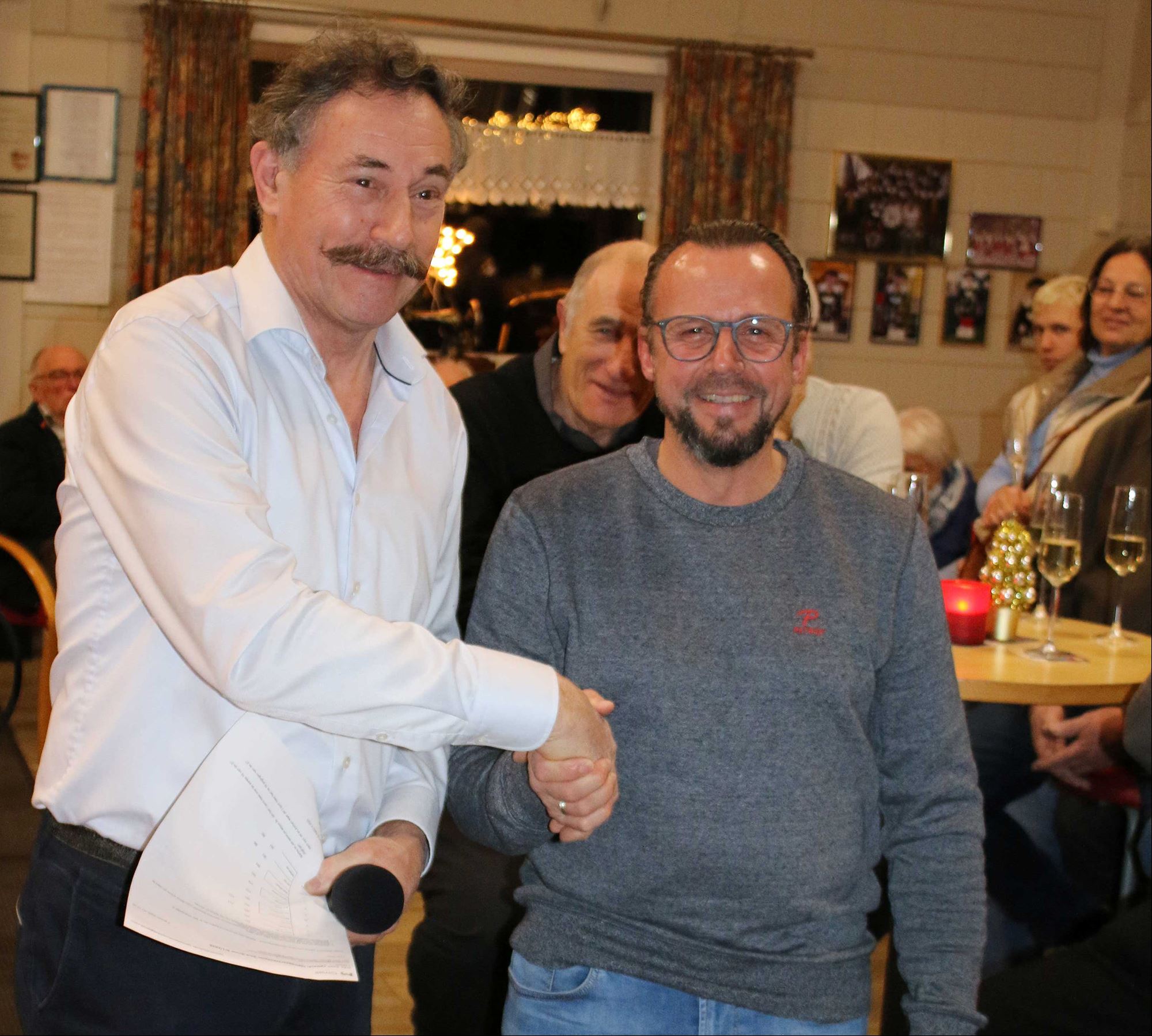 Kapitein en voorzitter Bert Jansen blikte tijdens de receptie terug op een schitterend werkjaar 2025. Daarbij maakte hij ook de winnaars bekend van het wedstrijdschieten: