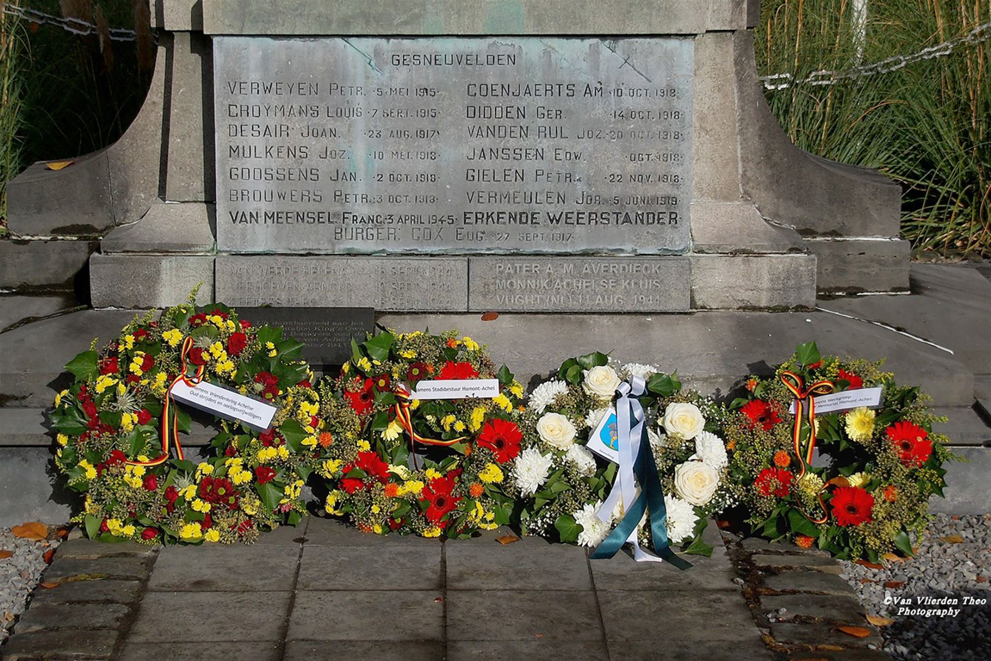 Wapenstilstand buiten verdergezet met een hulde aan het oorlogsmonument. Leerlingen van De Achellier, de scouts van Hamont en de Koninklijke Fanfare Kempenbloei droegen hun steentje bij aan de plechtigheid.