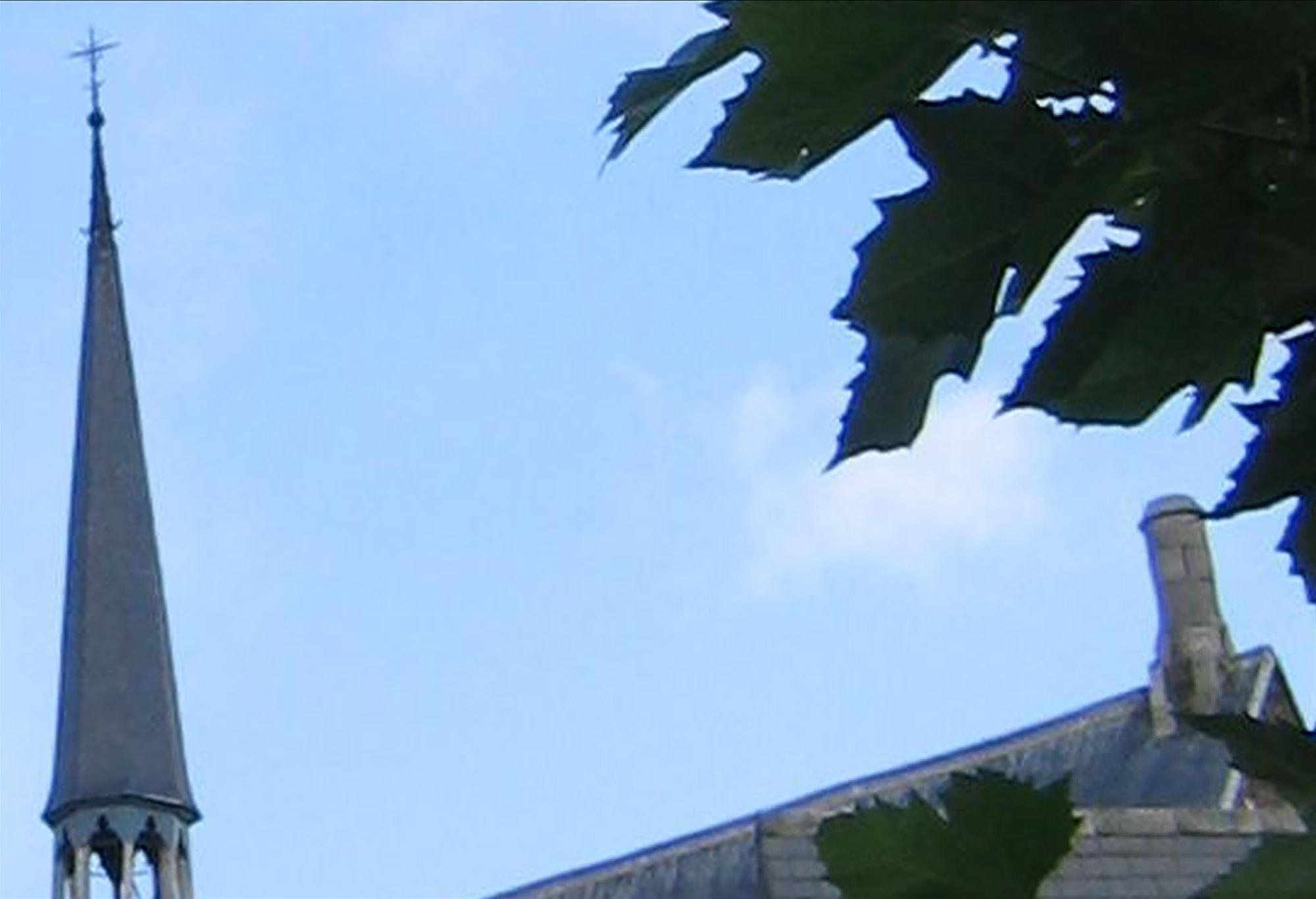Aan de uitgang van de sacristie werd zopas ook een arduinen schouw uit 1904 geplaatst. Die werd in 2002 van het kerkdak gehaald omwille van stabiliteitsproblemen. Monumenten gaf destijds toestemming, op voorwaarde dat dit opvallende bouwonderdeel een vaste plaats zou krijgen op de begane grond in de omgeving van de kerk. Het stadsbestuur, dat deze schouw sindsdien op de werf bewaarde, heeft deze opdracht nu tot een goed einde gebracht.