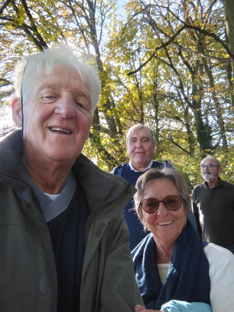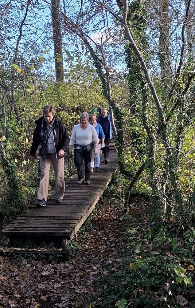 dertien leden van NEOS Hamont-Achel naar Bocholt voor een gezellige herfstwandeling in en rond het domein van