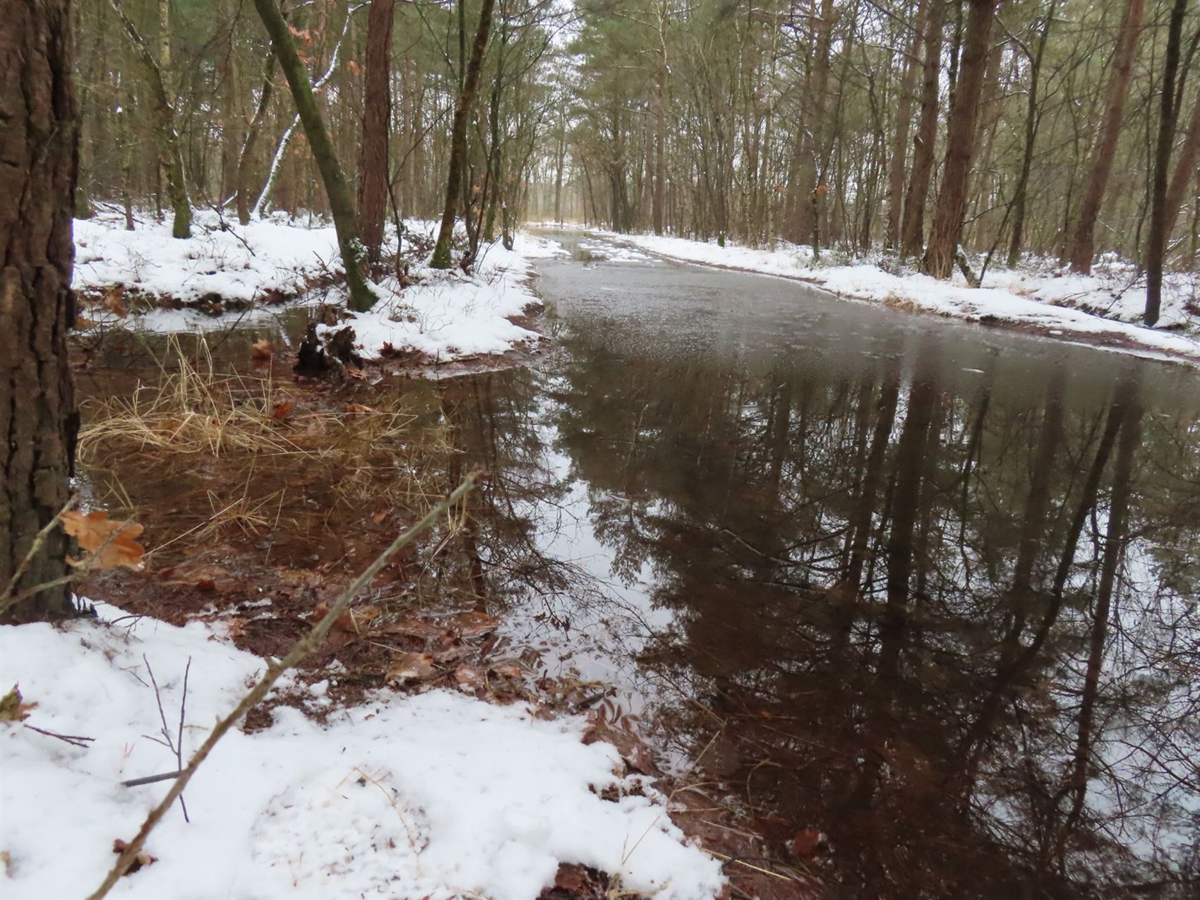 Gonny Theuwkens, die ons enkele foto’s bezorgde waarop duidelijk te zien is dat het pad hier en daar stevig onder water staat. Haar advies is dus allesbehalve overdreven.