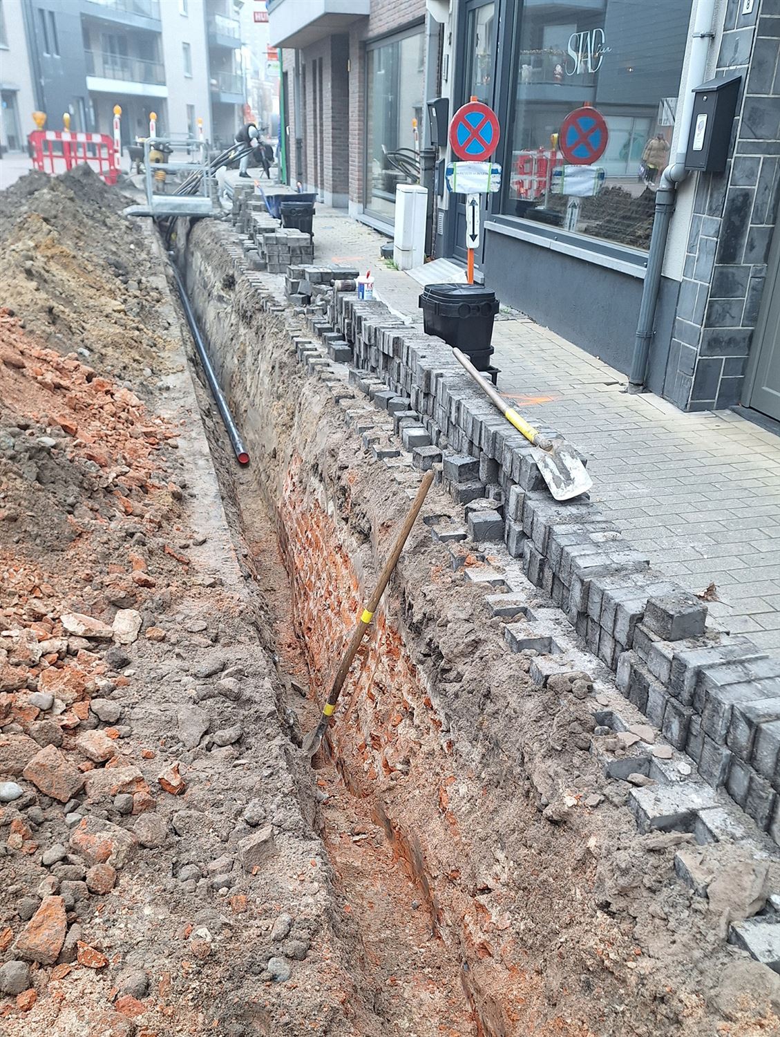 graafwerken in het centrum van Hamont, in het kader van de uitrol van een modern glasvezelnetwerk, kwam onverwacht een stukje geschiedenis aan de oppervlakte. In de Stadsstraat werd tijdens de sleufwerken een deel van de