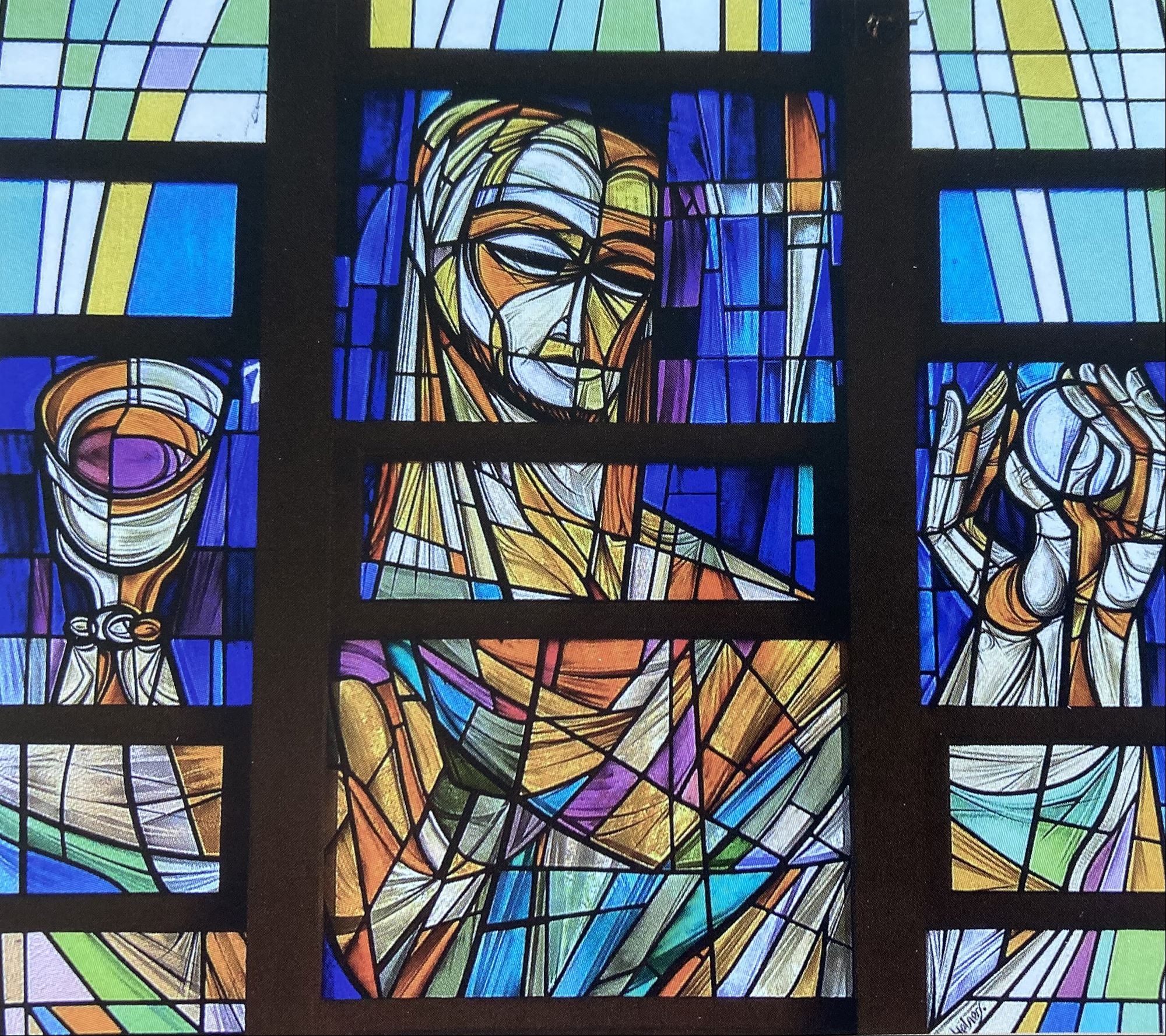 De foto’s van de brandglasramen komen uit de publicatie ‘Een parochie met een gouden randje’, uitgegeven naar aanleiding van de viering van de 50ste verjaardag van de inwijding van de kerk.