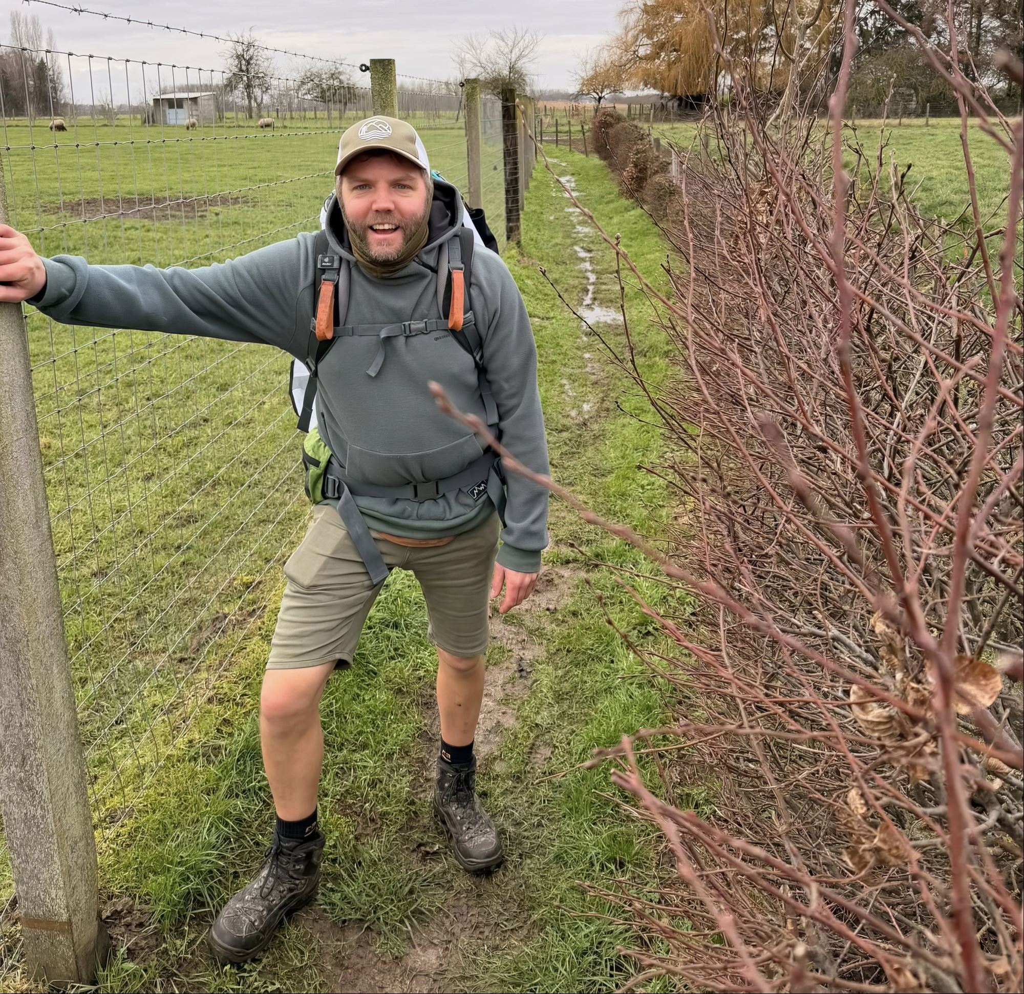 Na een nacht in een hotel met 24u-receptie (lees: koffie bij het opstaan) trokken we opnieuw op pad. De eerste uren waren eerlijk gezegd niet de beste: veel drukte rond Gent, volle fietspaden in tegenrichting, verbindingswegen met slechte of zelfs geen voetpaden… en ja, toen begon het ook nog te regenen. Niet onze favoriete kilometers.