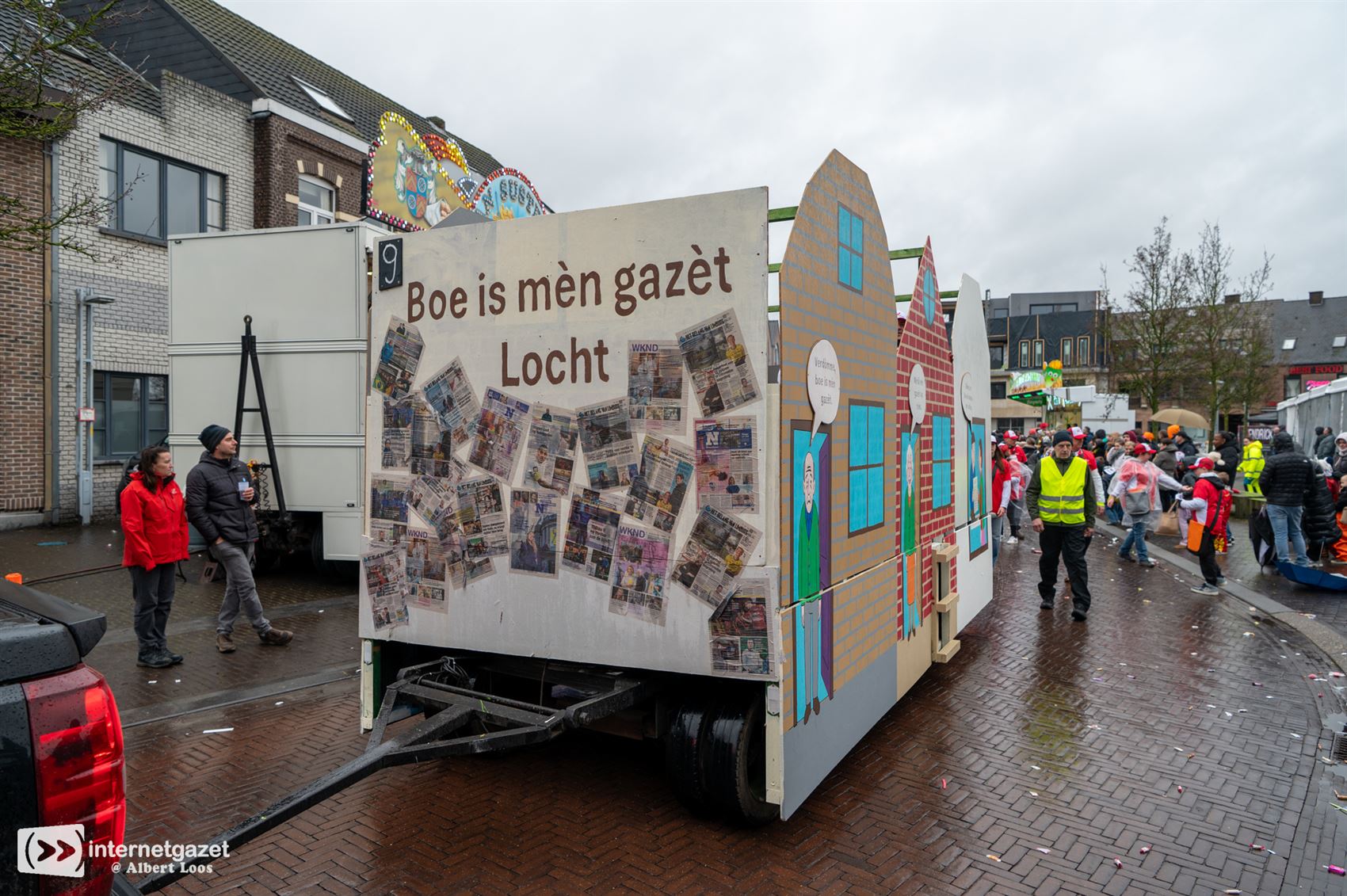 Internetgazet lezen. Zelfs in de regen. De wagen van CV De Locht was versierd met krantenknipsels en een duidelijke boodschap. Een knappe vondst die bij heel wat toeschouwers een glimlach op het gezicht toverde. Want toegegeven: een beetje zelfrelativering kan carnaval wel gebruiken.