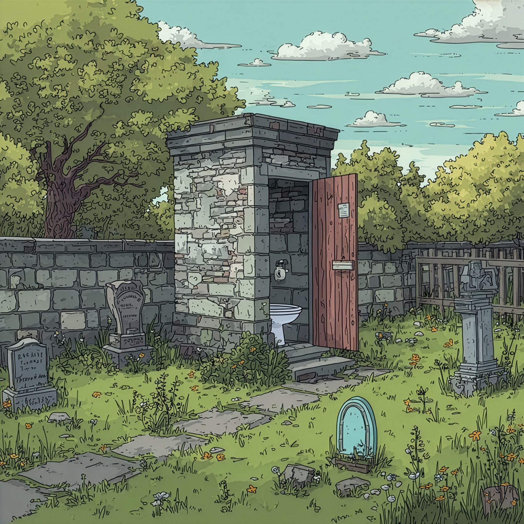 Daar zat ik dan, opgesloten op het kerkhoftoilet. Magda, mijn vrouw, intussen ergens tussen de zerken aan het wandelen, totaal onwetend. Maar ge weet: ik blijf altijd kalm. Dus ik pak m’n gsm, bel Magda — maar ja, die had haar telefoon thuis laten liggen.