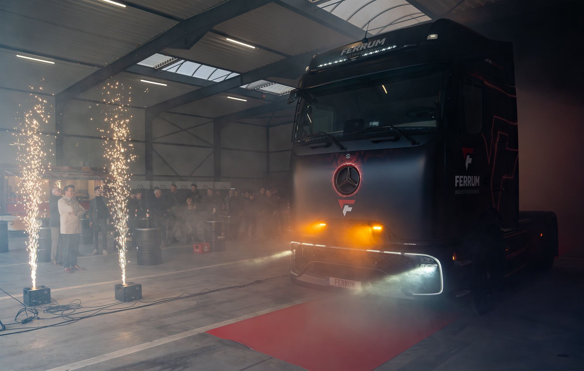 Tijdens de voorstelling kregen de aanwezigen ook toelichting van Mercedes, de fabrikant van het voertuig. “Ferrum toont lef,” klonk het daar. “Ze bewijzen dat elektrische vrachtwagens niet enkel weggelegd zijn voor transportbedrijven, maar ook perfect inzetbaar zijn binnen de bouwsector.”