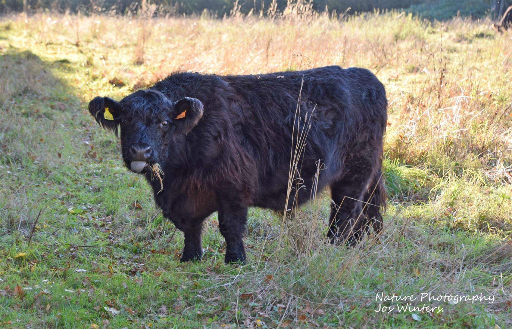 fotograaf Jos Winters, heeft deze Galloway-stier in werkelijkheid een zacht karakter. Gallowayrunderen worden vaak ingezet in natuurgebieden: ze zijn niet kieskeurig, hebben weinig verzorging nodig en staan bekend om hun rustige, niet-agressieve gedrag.