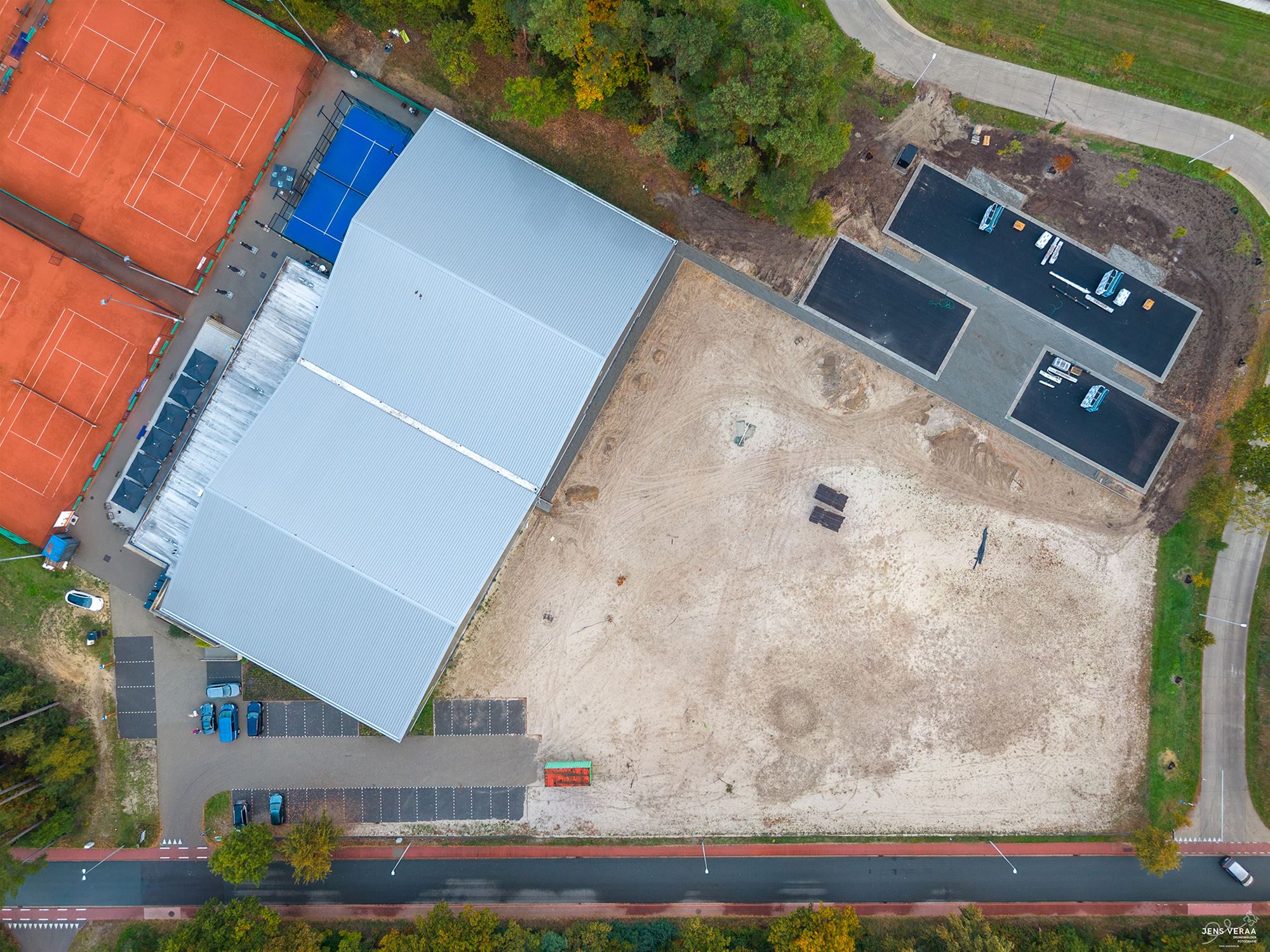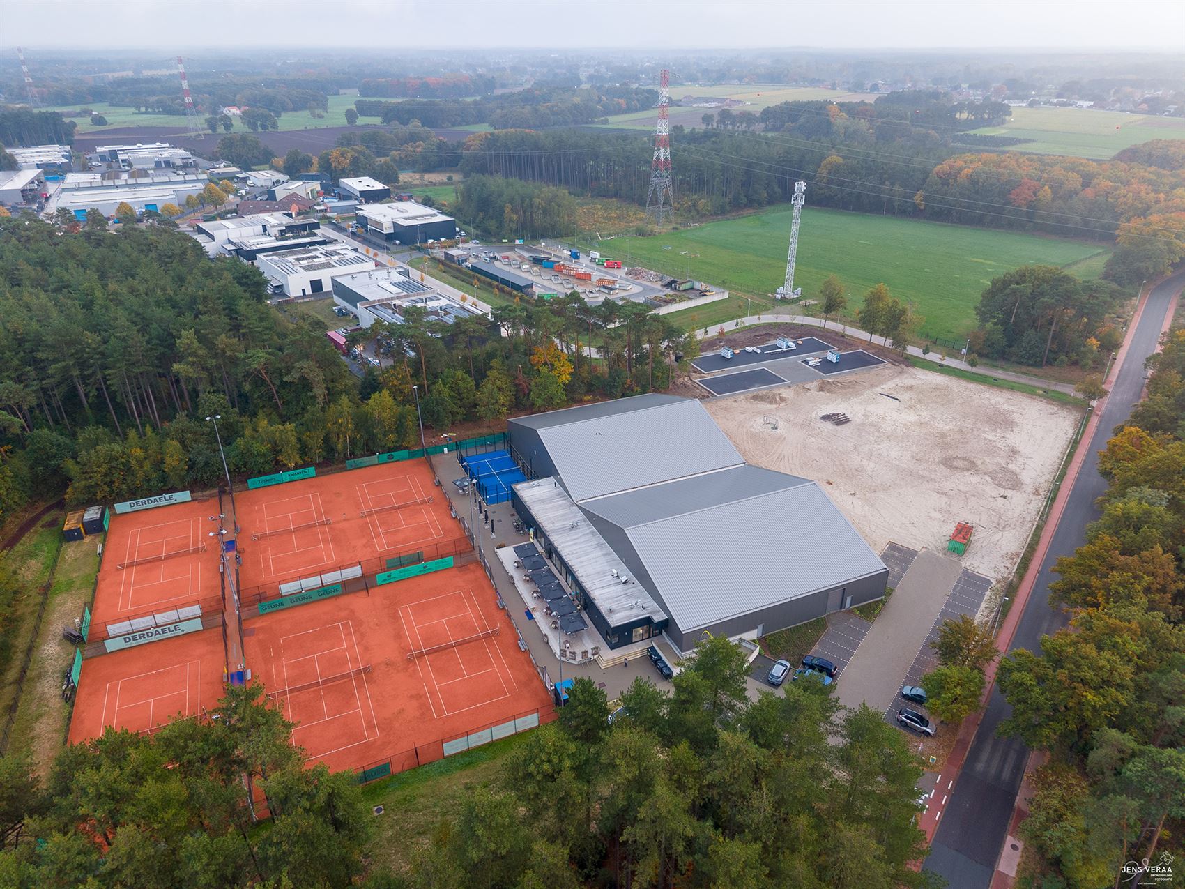 plannen. Momenteel beschikt de club over één eigen padelterrein en kunnen leden bovendien terecht op twee bijkomende terreinen bij vakantiepark Landal, op amper twee kilometer afstand. Maar als we de luchtbeelden die