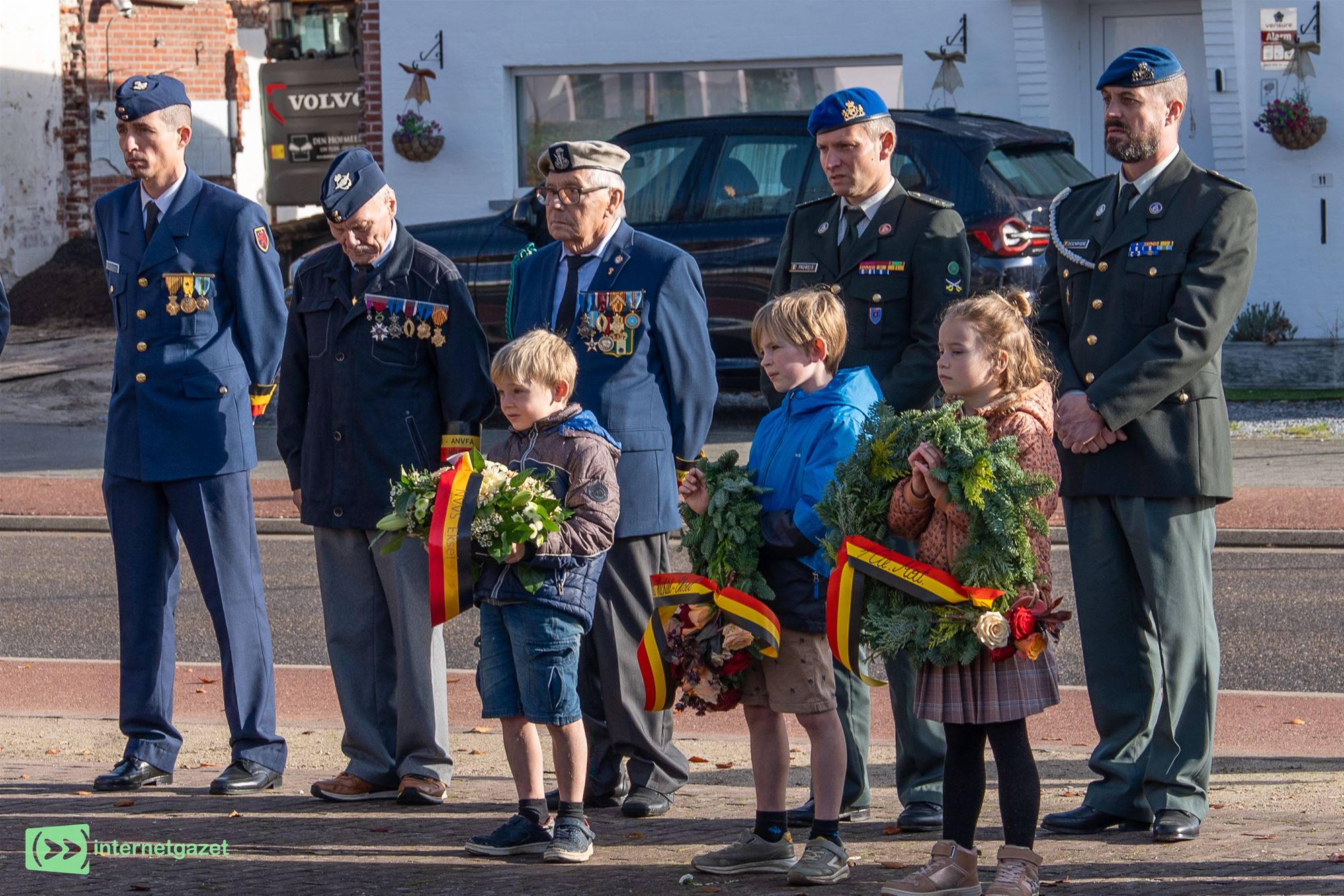 Eksel Wapenstilstand herdacht. De plechtigheid begon om 9.40 uur met een samenkomst aan De Geer, waarna de stoet – begeleid door fanfare Eendracht Eksel – richting Kerkplein trok. Na de eucharistieviering volgde de hulde aan het standbeeld der gesneuvelden op het Oud Marktplein, met enkele voordrachten, een bloemenhulde en een stiltemoment.