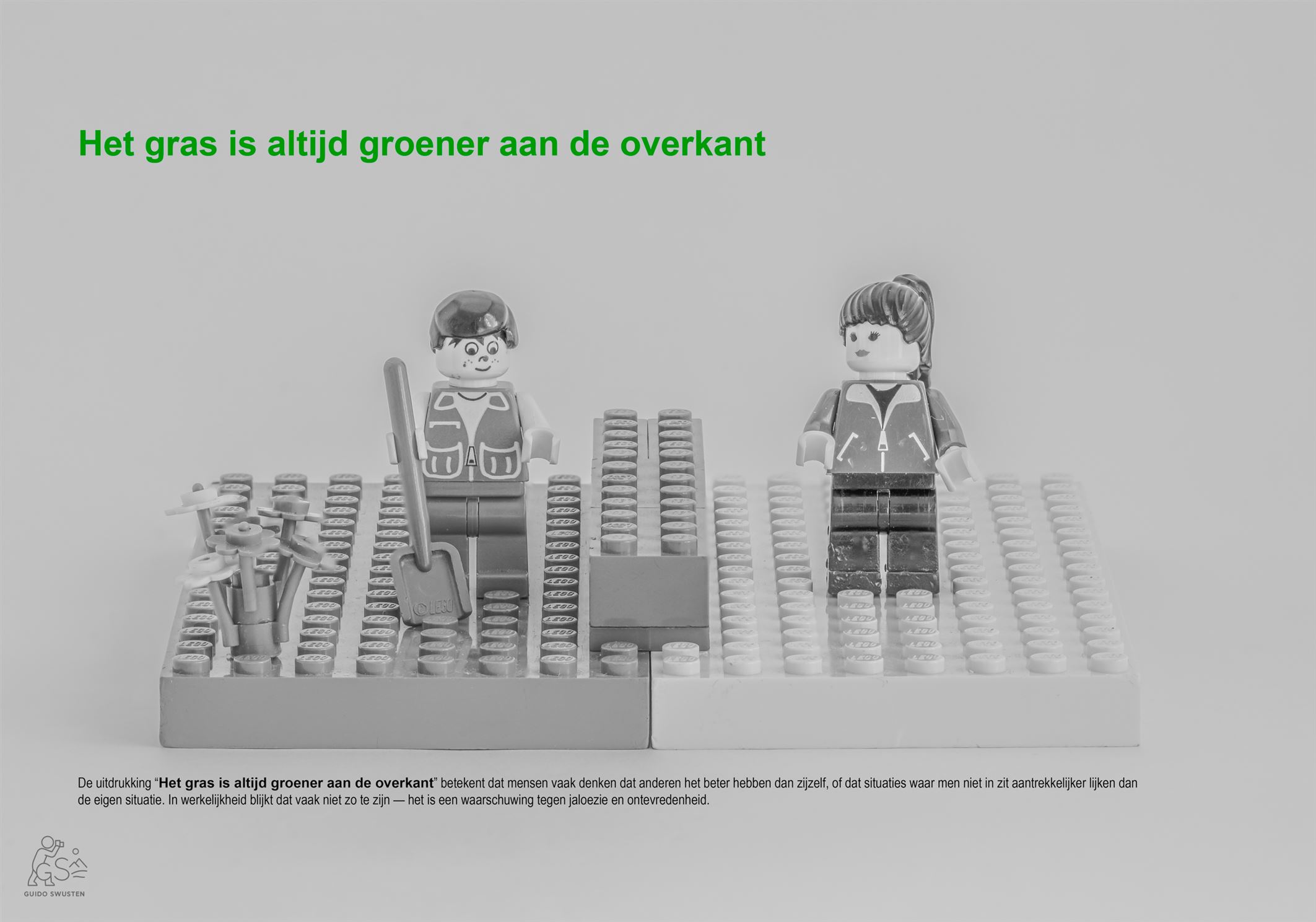 Het gras is altijd groener aan de overkant” betekent dat mensen vaak denken dat anderen het beter hebben dan zijzelf, of dat situaties waar men niet in zit aantrekkelijker lijken dan de eigen situatie. In werkelijkheid blijkt dat vaak niet zo te zijn — het is een waarschuwing tegen jaloezie en ontevredenheid.