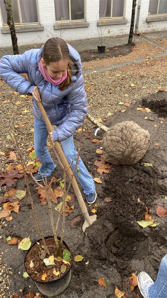 Vandaag planten de leerlingen zelf hun plantje of boom. Een symbolisch moment dat voor velen bijzonder voelt.