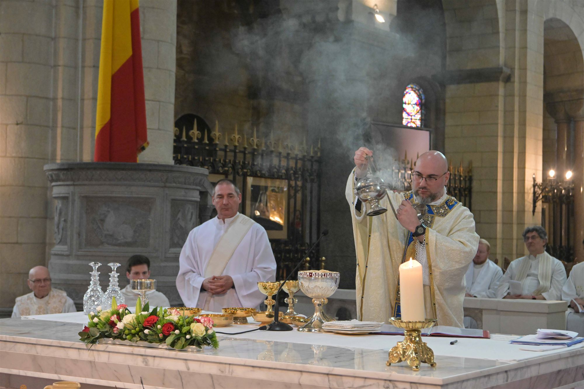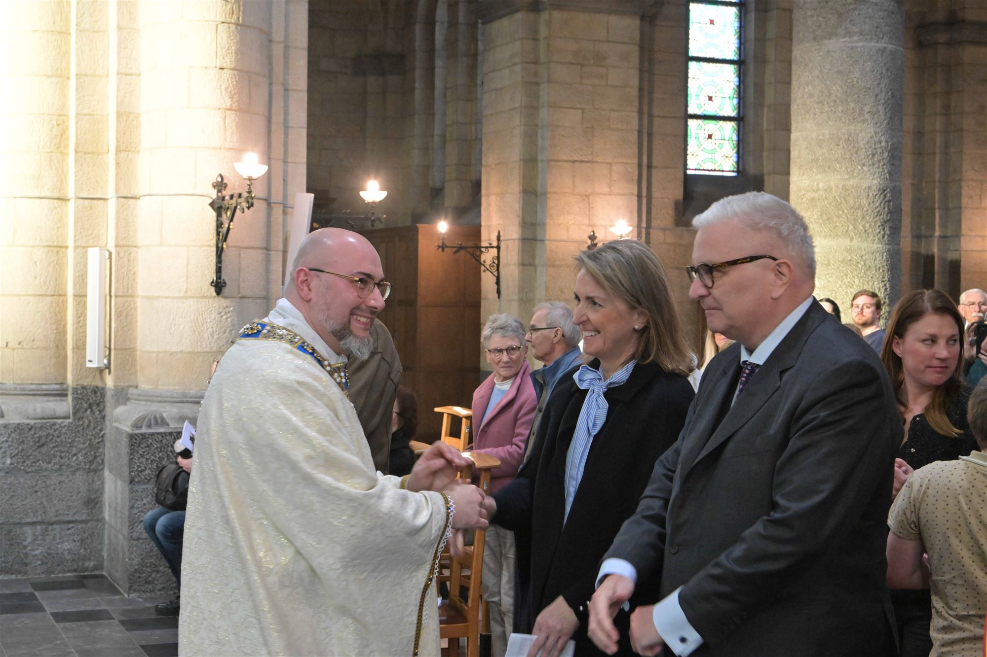 In aanwezigheid van prins Laurent en prinses Claire werd deze namiddag in een bomvolle kerk de nieuwe pastoor aangesteld. Gianluca Loperfido neemt met heel veel goesting de taak van pastoor op zich. Het parochieteam had de viering al weken voorbereid. Het werd dan ook een emotionele viering waar de parochianen naar uit keken. Ze stellen veel hoop op de jonge priester. De aanwezigheid van het prinsenpaar is te danken aan de banden die Loperfido heeft met koningin Paola, net als de pastoor van Italiaanse afkomst. "Ik heb haar al een paar keer ontmoet. De eerste keer bij de Italiaanse gemeenschap in Genk". Paola en Albert konden er niet zijn maar Laurent en Claire namen de honneurs waar.