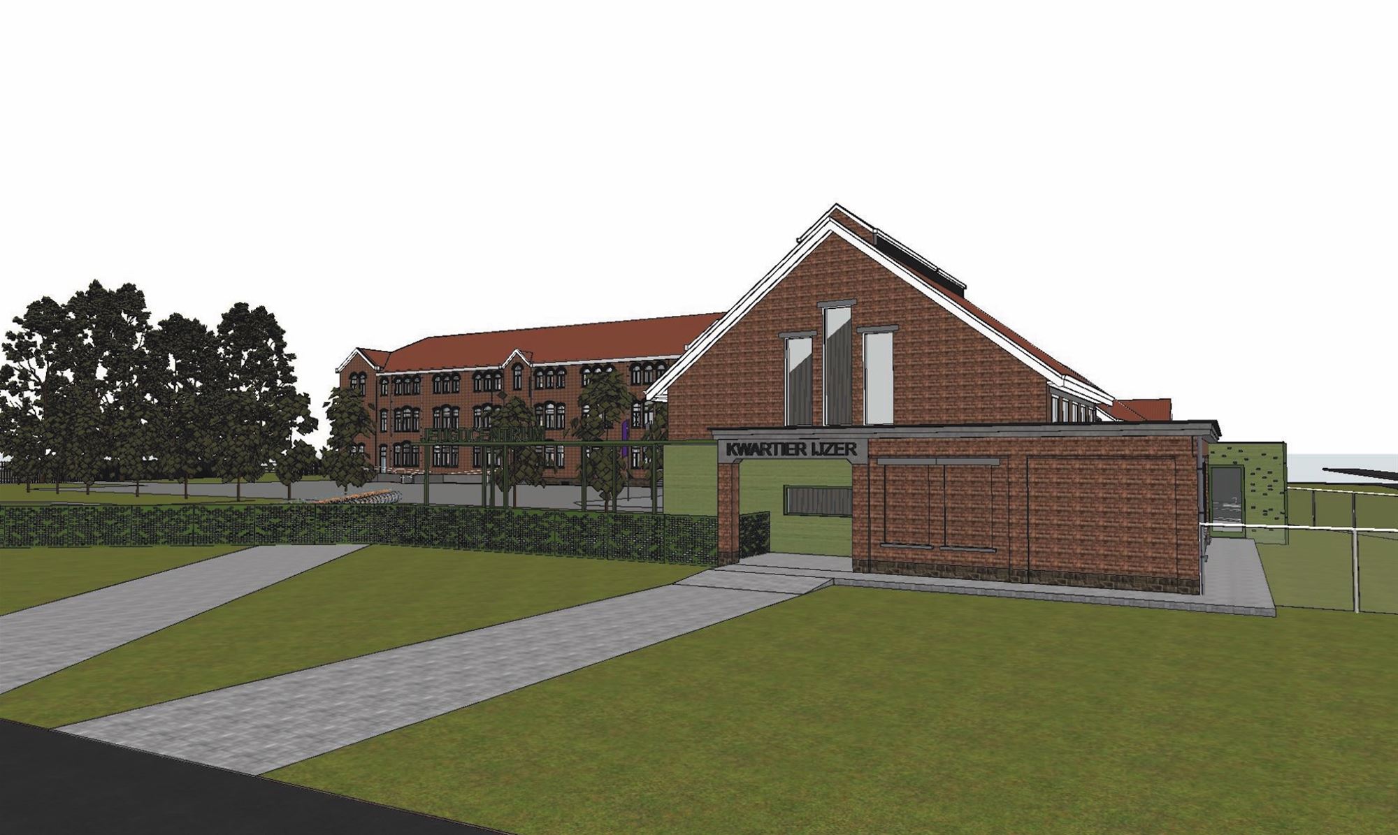 Zijgebouw: de voormalige soldatenmess wordt omgevormd tot een evenementen- en concertzaal van 270 m², met backstage, toogruimte en vestiaire. Deze dient echter voor veel meer dan feesten. Ook de werkingen van de jeugddienst, zoals de speelpleinwerking en de speldagen zullen hier plaatsvinden. En ook OverKop krijgt hier een plek. Jeugdverenigingen, maar ook de sociale partners in Kwartier IJzer (Kind en Taal, Saamo…) zullen deze plek kunnen gebruiken voor activiteiten. Daarnaast komen er een jeugdhuis en vergaderruimtes.