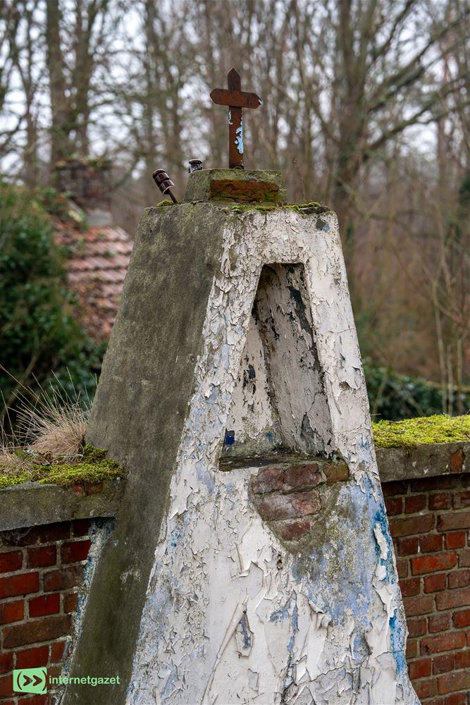 Wie er vandaag passeert, ziet vooral veel vraagtekens: de nis – waar normaal een beeldje van een heilige of Mariabeeld staat – is leeg, en ook het metselwerk oogt verwaarloosd. Waar is het beeld gebleven? En wie zorgt er nog voor dit stukje volksdevotie? Even mysterieus: de woning erachter...