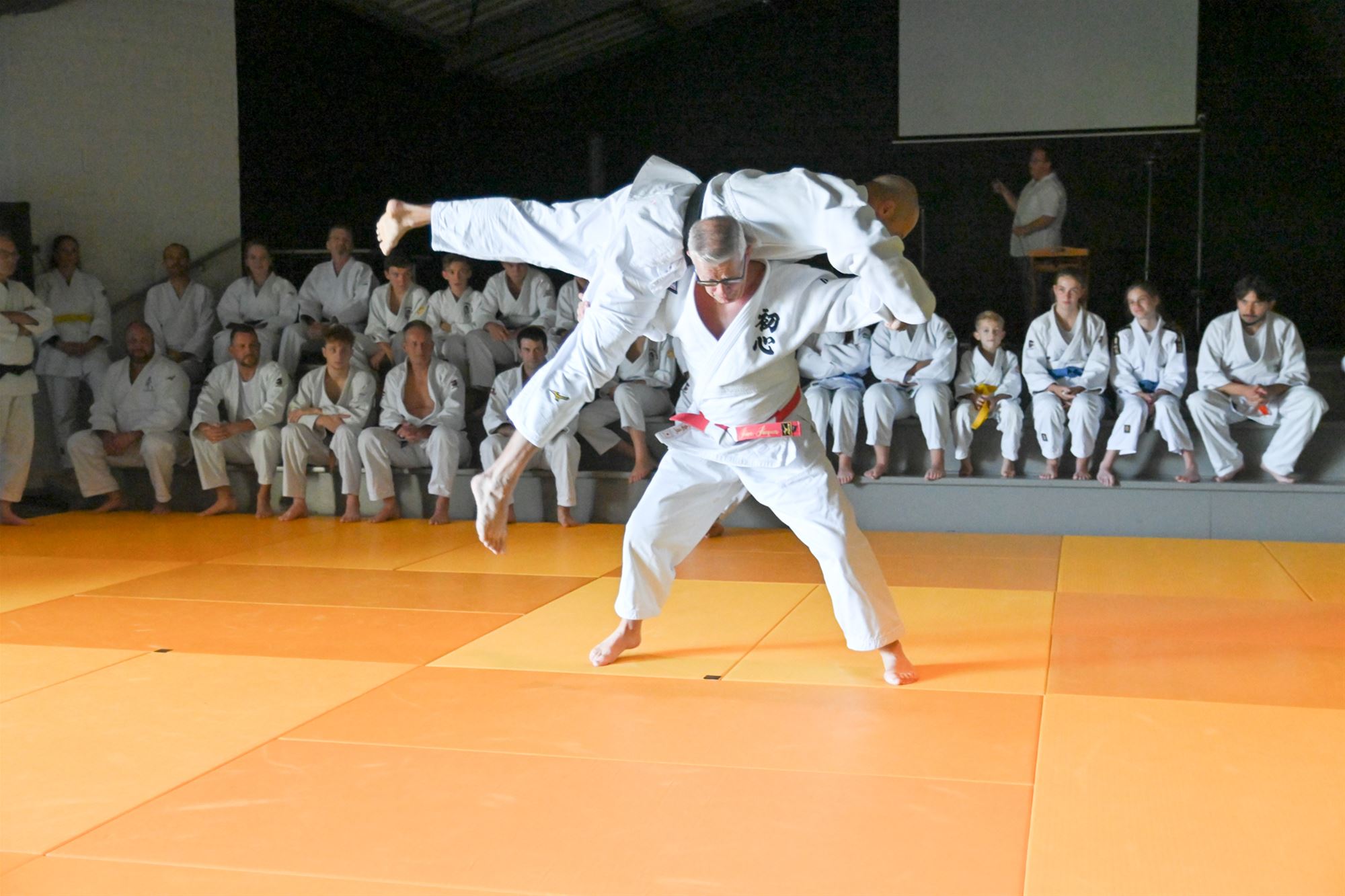 Doorheen de hele demonstratie stonden hoofdtrainer Jean-Jacques Melotte en lesgever Martijn samen op de mat om technieken voor te doen
