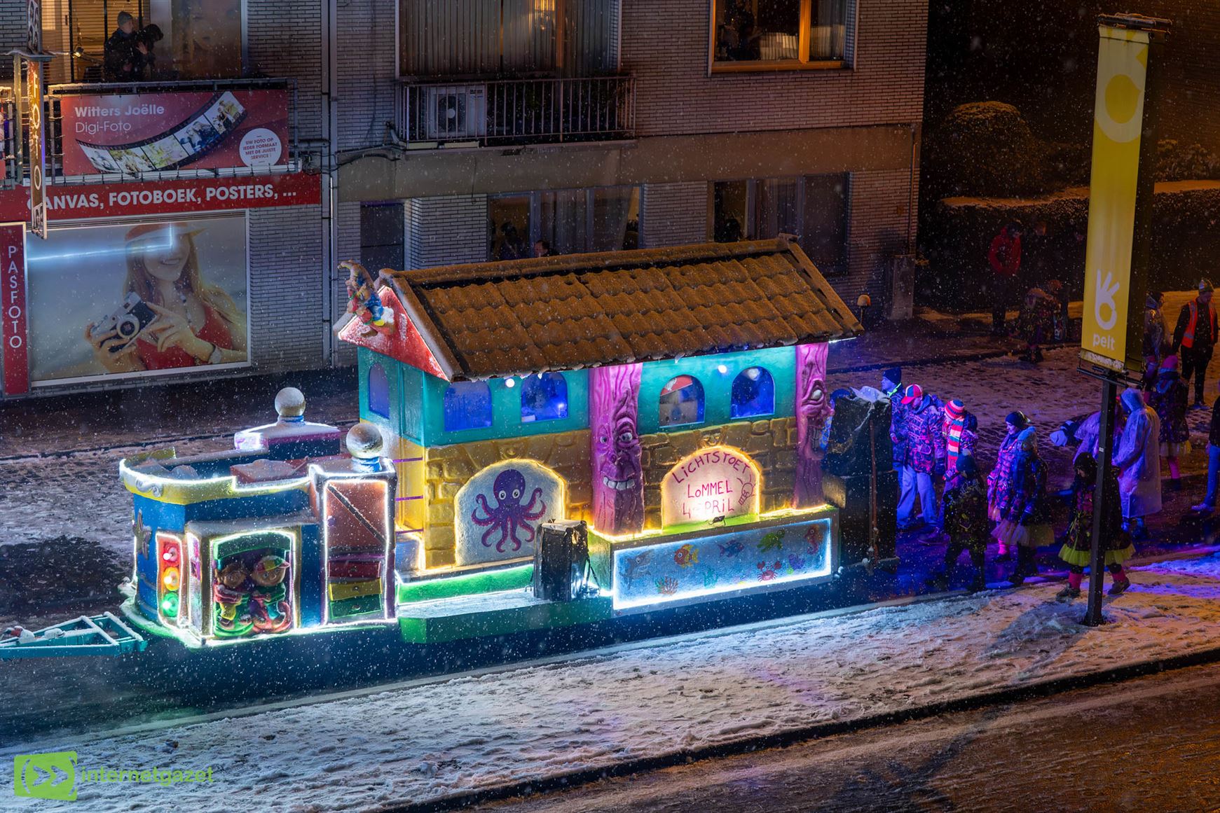 Lichtstoet in Lommel-centrum op 4 april. Die belooft opnieuw een sfeervolle avond te worden in het hart van de stad. Laat ons hopen dat de weergoden dan wat milder zijn, zodat de praalwagens niet door de sneeuw maar door het applaus kunnen glijden.
