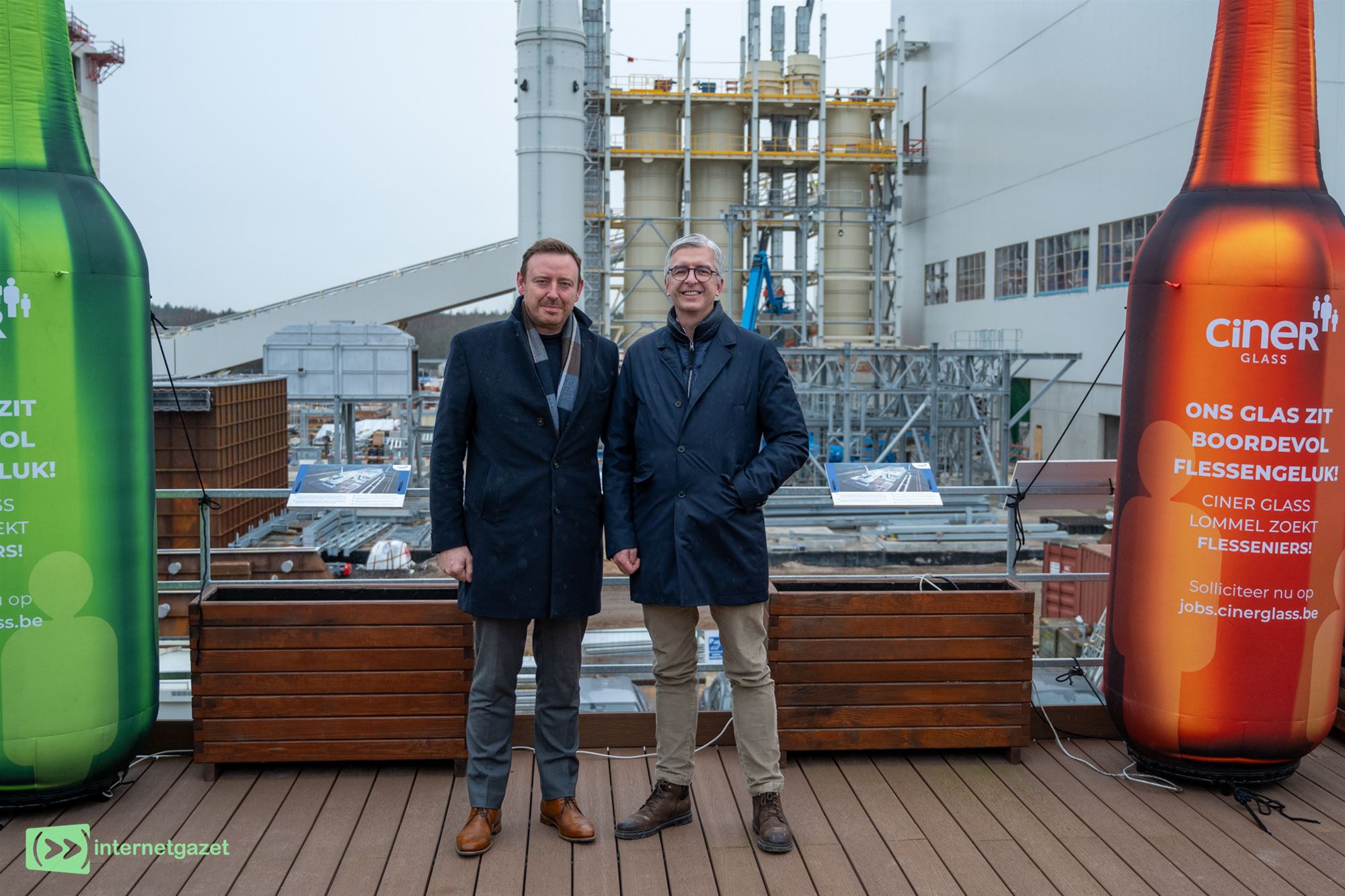 “Voor wie de context nog niet helemaal kent: hier in Lommel bouwen we een volledig nieuwe glasfabriek,” begon hij. Ciner Glass maakt deel uit van een Brits-Turkse groep en investeert in Lommel meer dan 600 miljoen euro in een productiesite voor glazen verpakkingen. “We spreken over flessen, bokalen en andere glasverpakkingen voor voeding en dranken.”