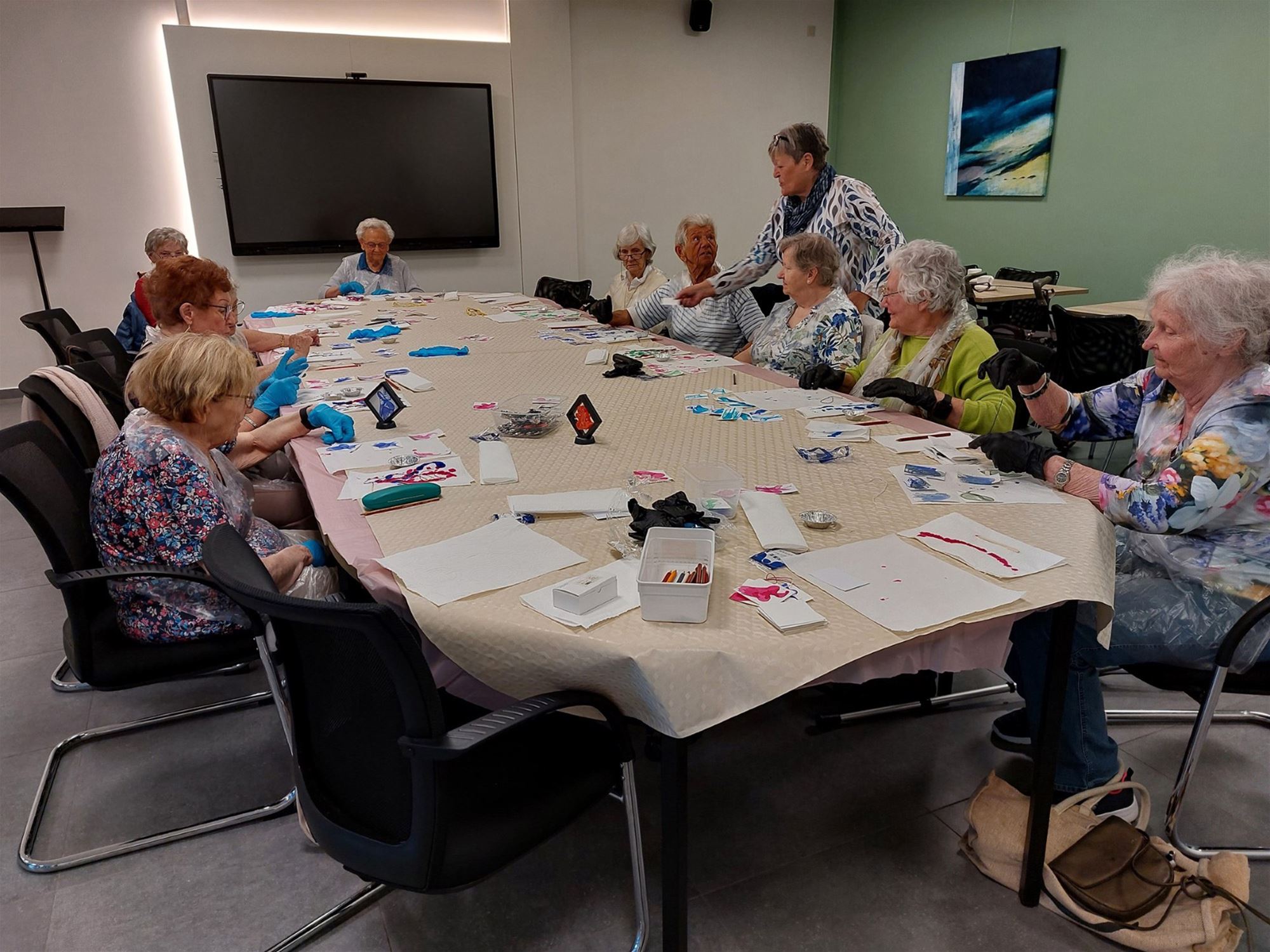 Natuurlijk was er tussendoor ook tijd voor koffie, koek en een gezellige babbel. Zo werd het opnieuw een warme en geslaagde namiddag voor de creagroep van Samana Lommel-Centrum.