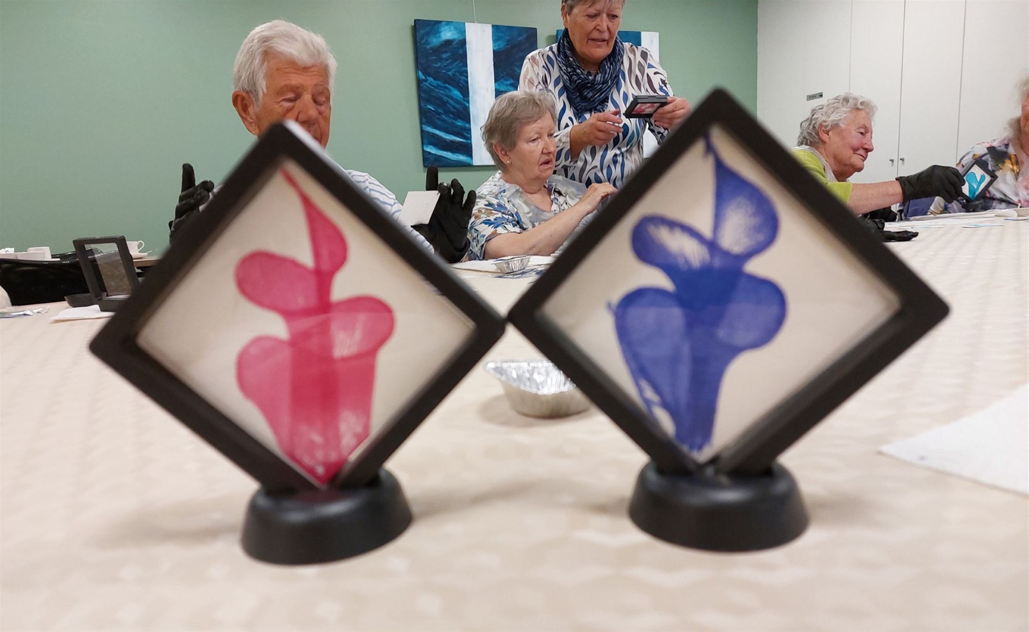 Het bleef telkens spannend om te ontdekken wat er precies tevoorschijn kwam. Na wat oefenen klonken vooral kreetjes van verwondering. Meestal herkenden de deelnemers een abstracte bloem, maar af en toe verscheen er ook een spook of zelfs een mossel. Dat maakte het extra verrassend en bijna magisch.