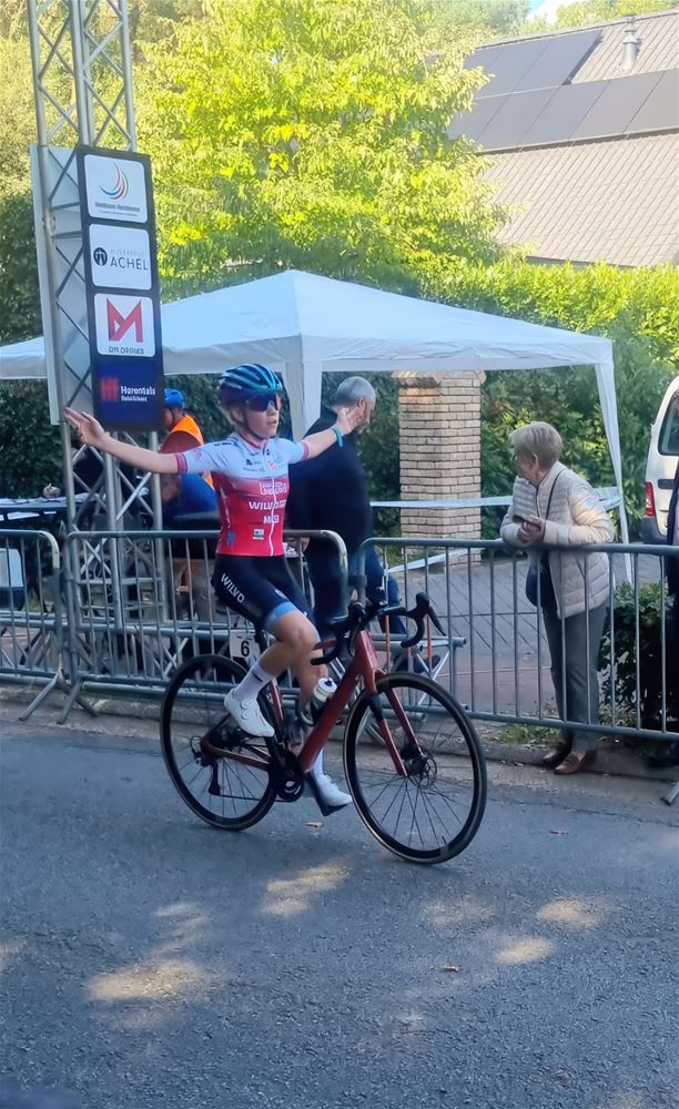 Marie-Laure Defeyter reed haar laatste wegwedstrijd als eerstejaars aspirante. Ze stonden bij de U13 met twee meisjes aan de start, tussen 24 jongens. Marie-Laure werd eerste meisje