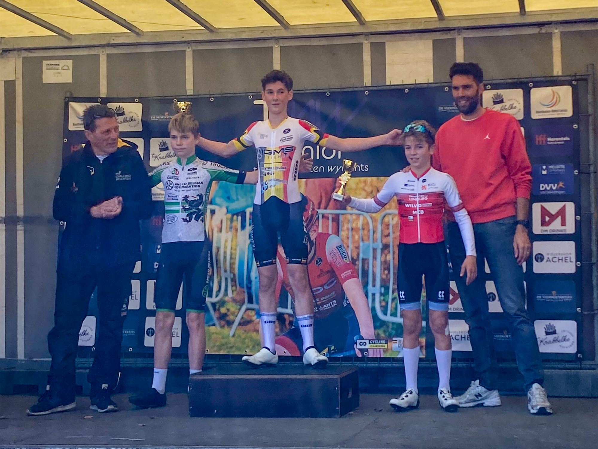 Nicolas Houben (laatste foto onder) verscheen aan de start, bij de jongste categorie U9. Hij werd er eerste op een heel mooi parcours en na een stevige sprint bergop, en scoorde daarmee een hattrick na eerdere winsten in Heide-Heuvel (Lommel) en Bel (Geel). Er waren 11 deelnemers in zijn categorie. Nicolas richt zich vanaf nu op het cyclocross seizoen samen met zijn ploeg Acrog-Tormans.