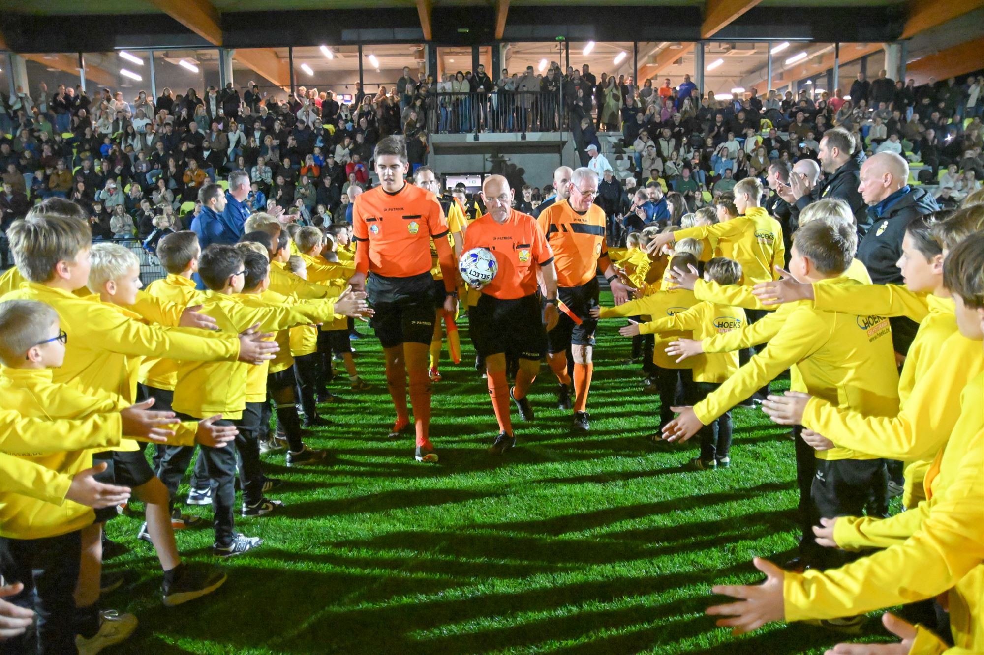 Na de fotosessie vormden de ploegen vanaf U6 een erehaag voor de spelers van beide teams, terwijl de spelertjes van U9 met de elftallen het veld mochten oplopen — een onvergetelijk moment voor de jonge voetballertjes én hun supporters.