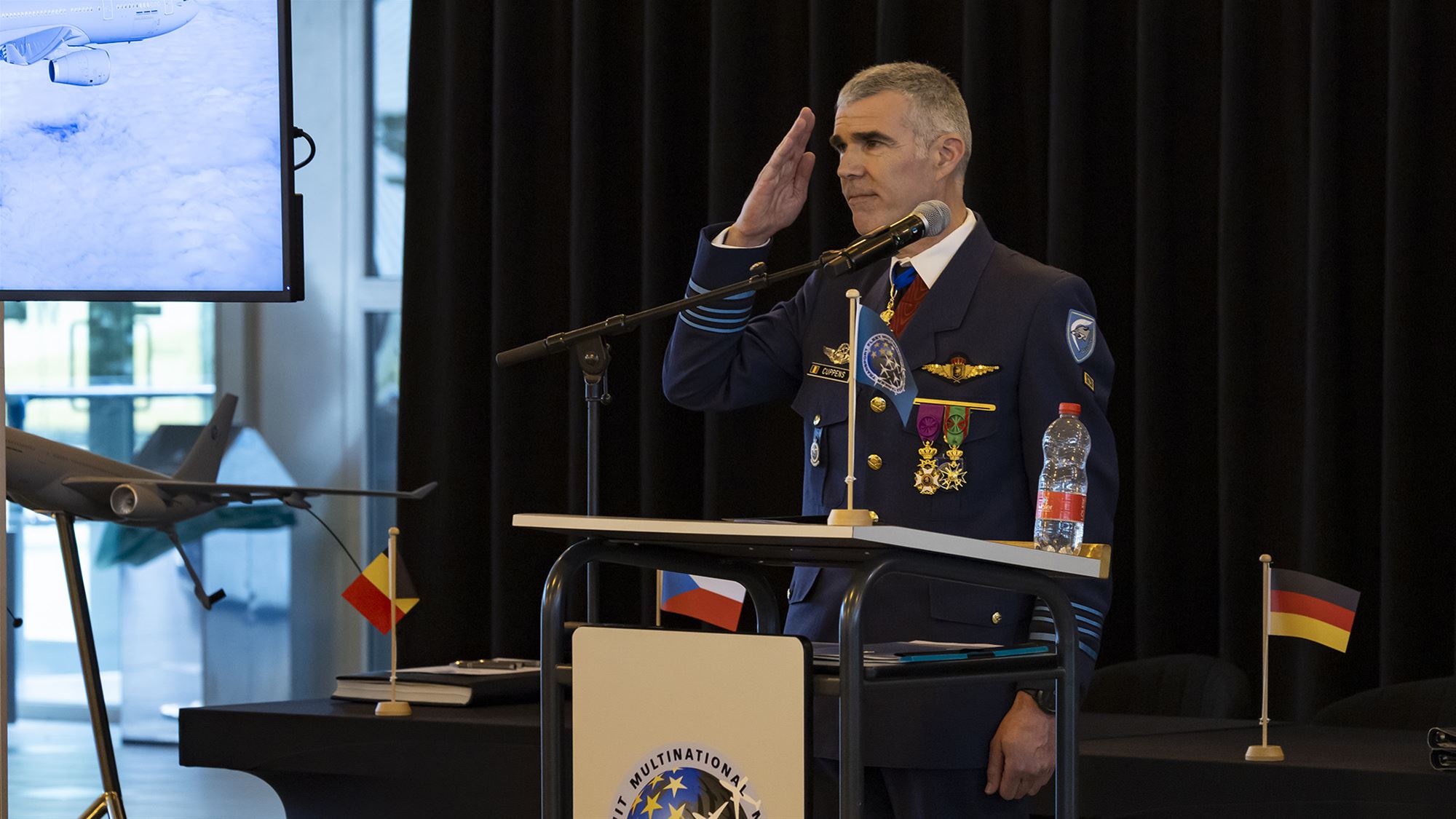 Kolonel Vlieger Gert Cuppens nam gisteren de leiding over de Multinational MRTT Unit (MMU), een strategische eenheid die