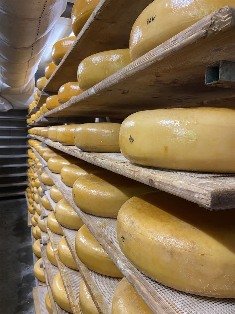 Na een introductievideo met uitleg van Peter en Bart volgde een rondleiding door de kaasmakerij en de indrukwekkende rijpingskelder. Natuurlijk mocht er ook geproefd worden: vier heerlijke kazen, een chocopasta, een ijsje én zelfs een potje yoghurt van het eigen huismerk.