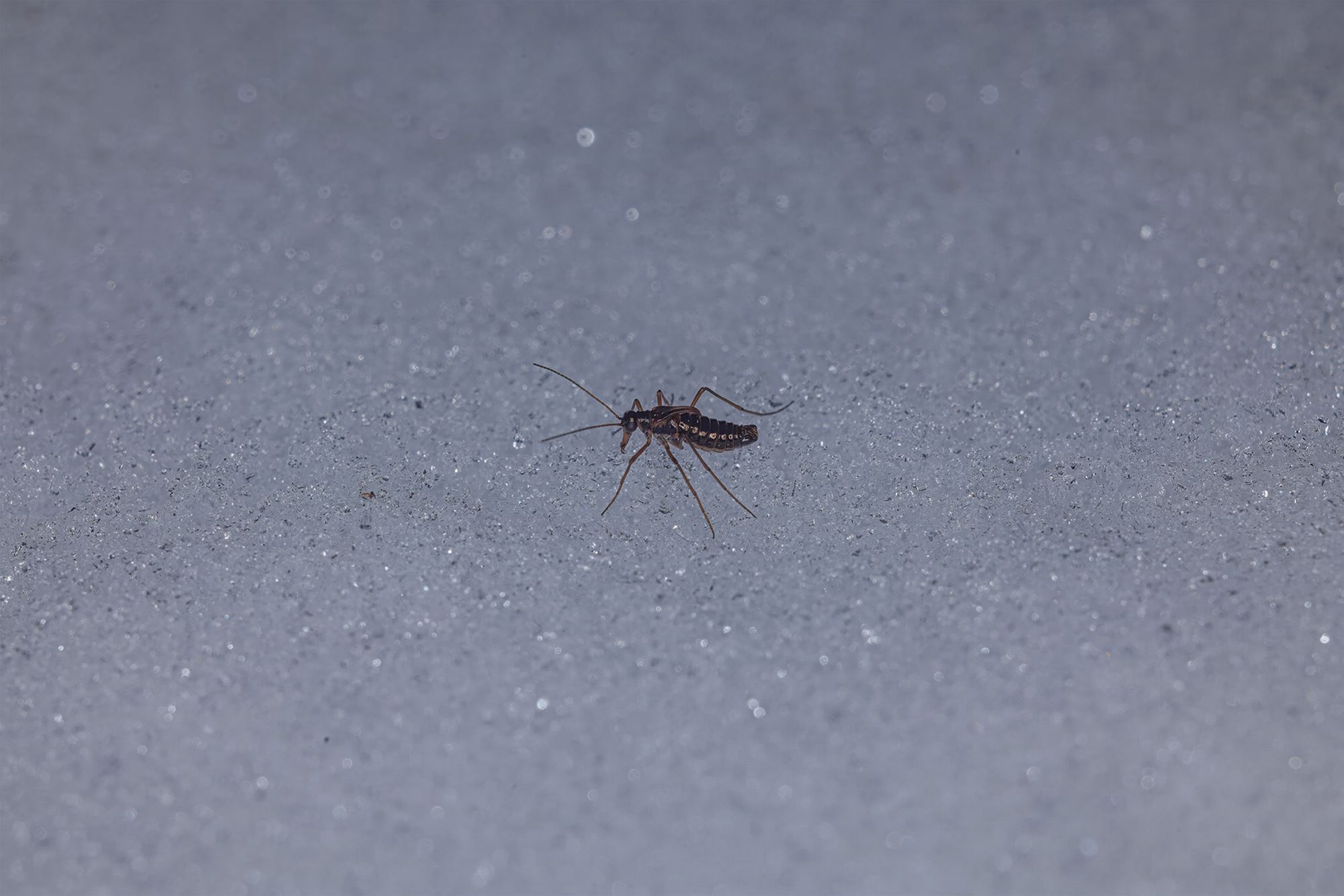 De sneeuwvlo is amper zo’n 4 millimeter groot, maar laat zich toch vrij makkelijk spotten.