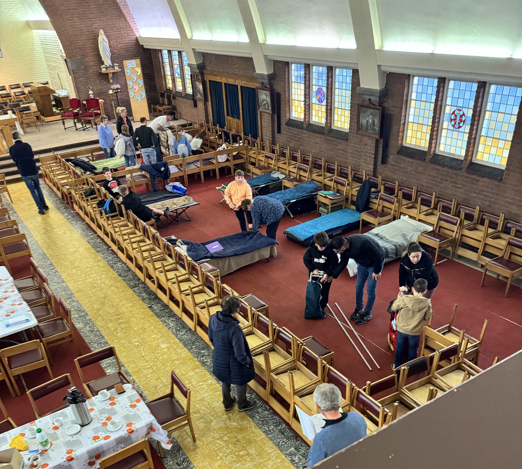 Vrijdagavond verzamelden de jongeren in de kerk om hun slaapplaats in te richten en samen afspraken te maken. Daarna trokken ze op wandeling naar het Heis kapelleke, waar ze met een brandende kaars stilstonden bij geloof en hoop. Terug in de kerk volgde de film La vita è bella, die met zijn thema’s van liefde, opoffering en hoop aanzette tot nadenken. Een korte pauze met fruitsla en een nabespreking maakten de avond compleet.