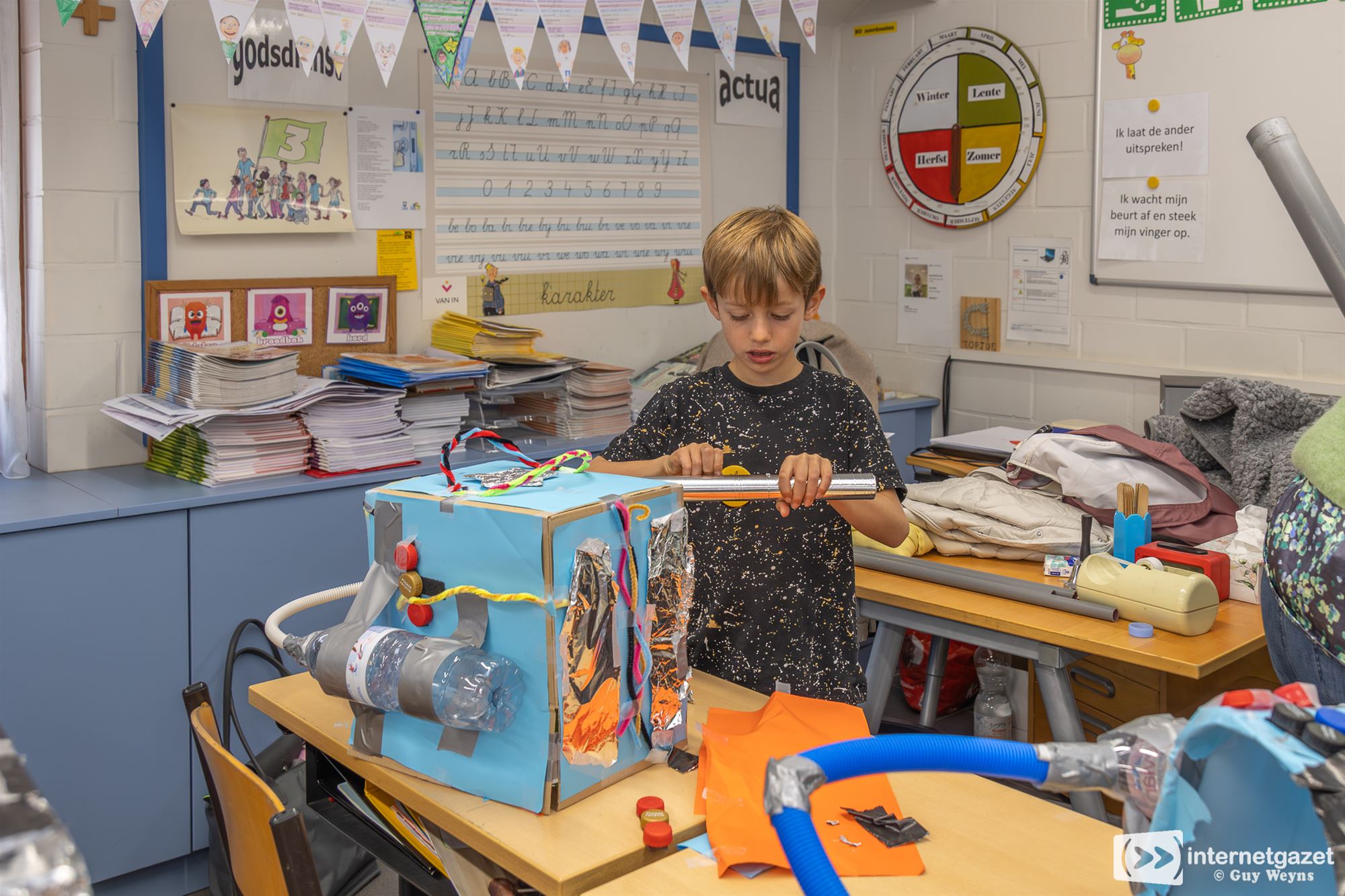 feestelijk afgesloten. Vanaf de namiddag opent de talentenmarkt, waar bezoekers de creatieve werken die de leerlingen gisteren en vandaag maakten kunnen bewonderen en kopen: schilderijen, bloemstukjes, knutselwerkjes en meer. Er zijn optredens van jonge goochelaars en musicaltalenten, een sponsorloop waarbij de kinderen zich een uur lang sportief inzetten voor het goede doel, en een spannende veiling van kunstwerken en technische creaties. Natuurlijk mag ook de spectaculaire raketlancering niet ontbreken.