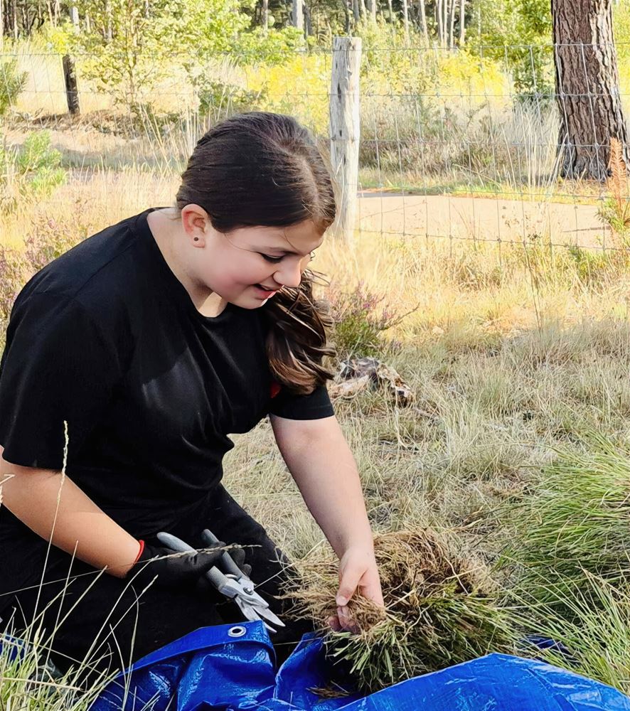 'Vegers voor Vlinders' van Werkgroep Isis. Onder deskundige begeleiding leerden ze waarom het belangrijk is om het pijpenstrootje – een snelgroeiende grassoort die de heide dreigt te overwoekeren – te verwijderen. Gewapend met het juiste materiaal gingen ze enthousiast aan de slag en hielpen ze het heidelandschap herstellen.