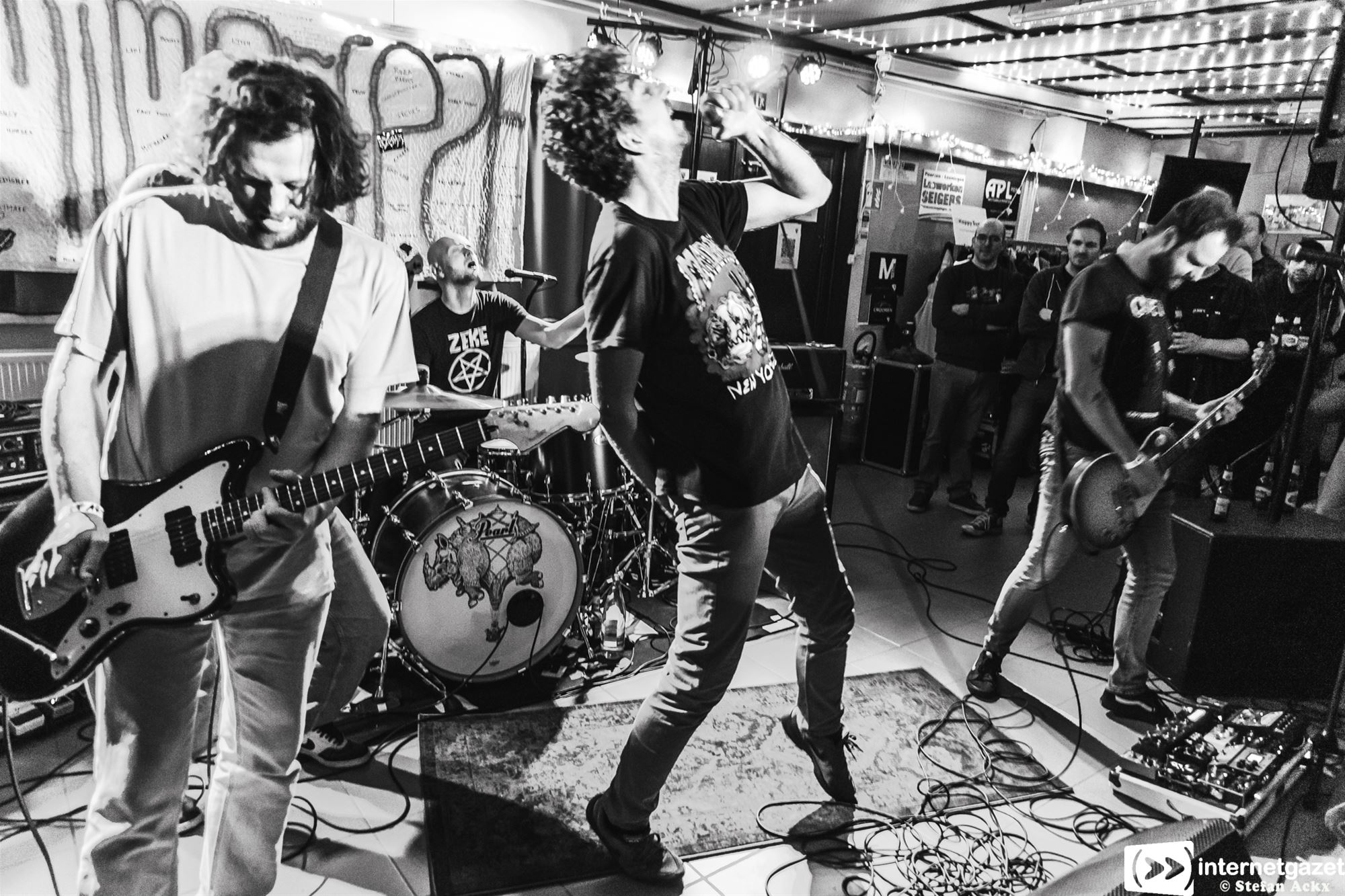 People playing toch te komen om de zaal op te warmen met hun gelaagde punkcovers. Ooit begonnen ze als coverband van enkel Minor Threat, maar ondertussen voegden ze ook andere HC-punk covers toe. Een geslaagde opwarmer.