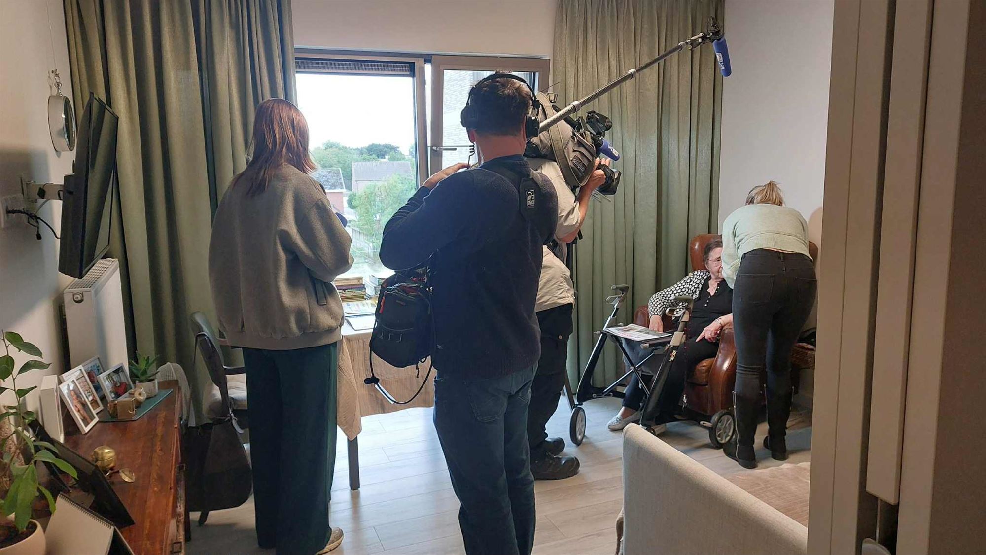 WZC Ploegdries. Het ging over de mogelijke verhoging van de rusthuisfactuur en de vaccinaties tegen het RSV virus in woonzorgcentra. Dat was natuurlijk een hele belevenis voor de bewoners, want een cameraploeg krijg je niet iedere dag over de vloer.