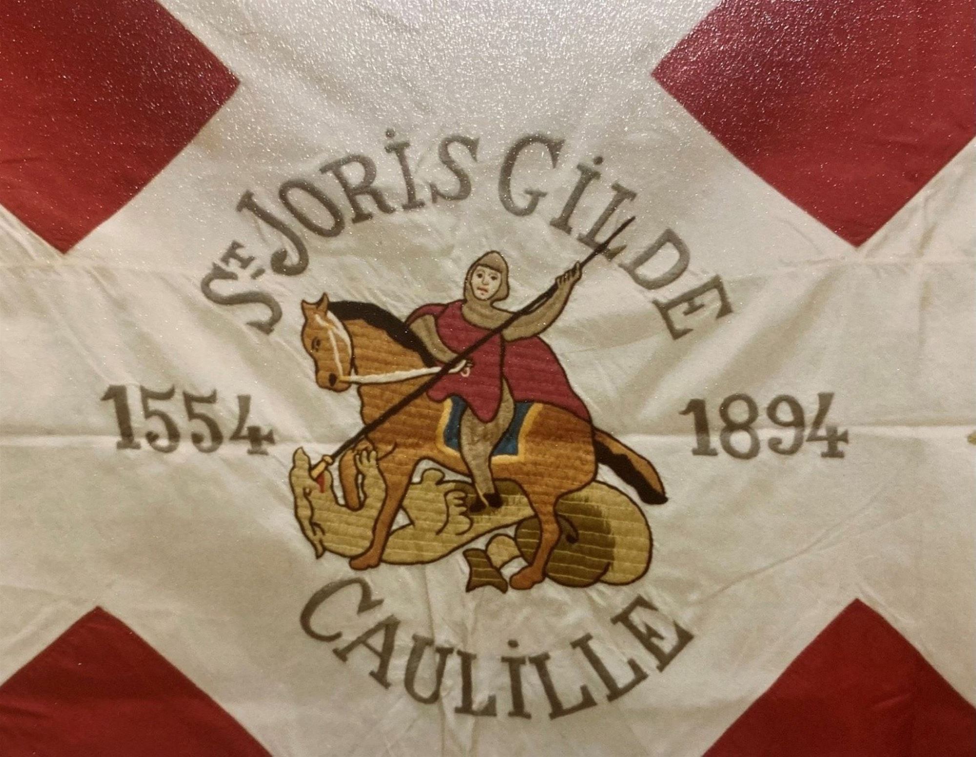 Eerste foto beneden: fragment uit een oud vaandel van de Sint-Jorisgilde van Kaulille.