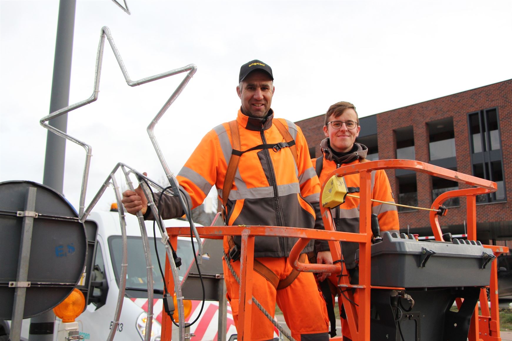 Met hoogwerker, veiligheidsharnas en een flinke dosis doorzettingsvermogen hingen ze de voorbije dagen alle lichtdecoratie op. Een precies werkje, soms in koude en wind, maar altijd met dezelfde inzet. Dankzij hen schitteren de straten opnieuw in volle glorie. Gemeente Oudsbergen zendt dan ook een oprechte dankjewel aan deze twee toppers én al hun collega’s die Oudsbergen elk jaar opnieuw laten fonkelen!