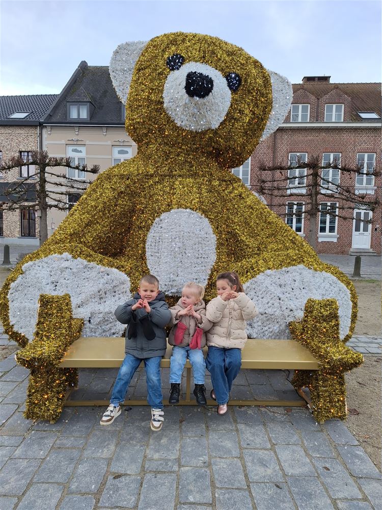 Net voor Kerstmis beloofden we dat de eerste drie inzenders van een foto, genomen op het bankje voor 'de Grote Beer' in het centrum van de stad, een cadeaubon zouden ontvangen.