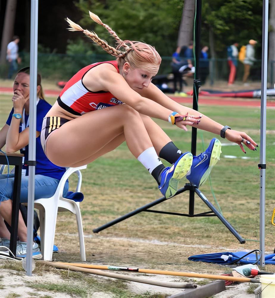 15-jarige ver- en hinkstapspringster van AV Toekomst zette een uitzonderlijke reeks neer met maar liefst
