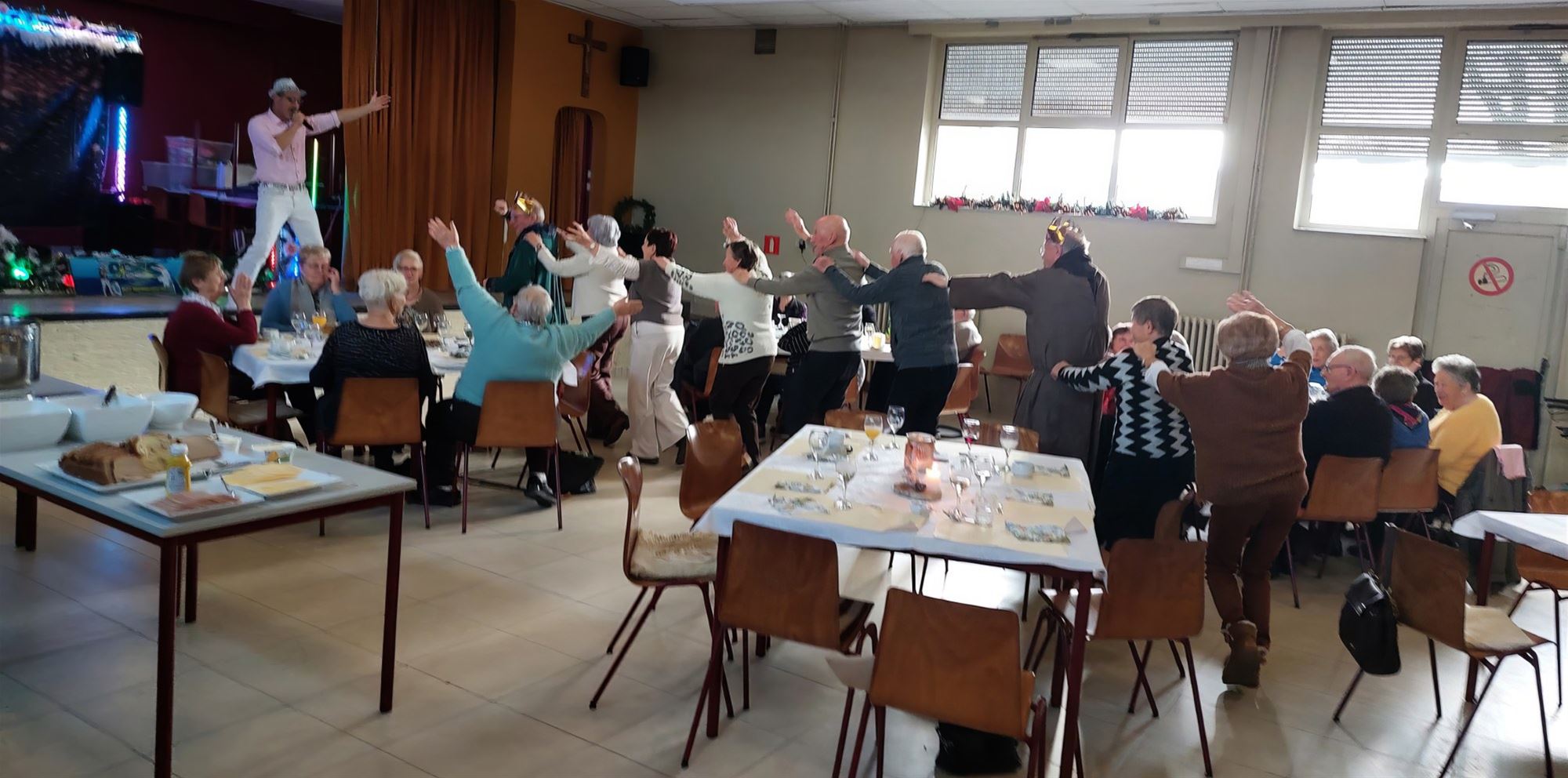 de drie wijzen van het bestuur. Voorzitter Jaak heette iedereen welkom en wenste alle aanwezigen een vreugdevol en gezond 2026 toe. Rik en Jan openden het samenzijn met een mooie bezinning, waarna Gerrit verraste met een oud en sfeervol Driekoningenlied. De kookmoeders zorgden opnieuw voor een heerlijk, ouderwets buffet dat bijzonder in de smaak viel. Voor de muzikale ontspanning bracht Jimmy een selectie Vlaamse liedjes, waarbij enthousiast werd meegezongen.