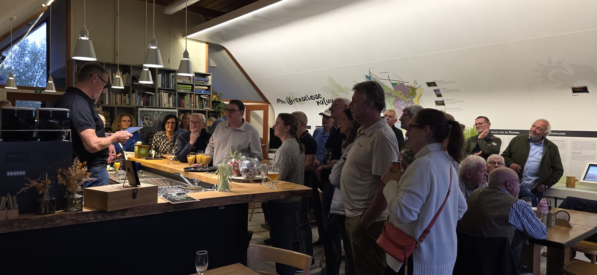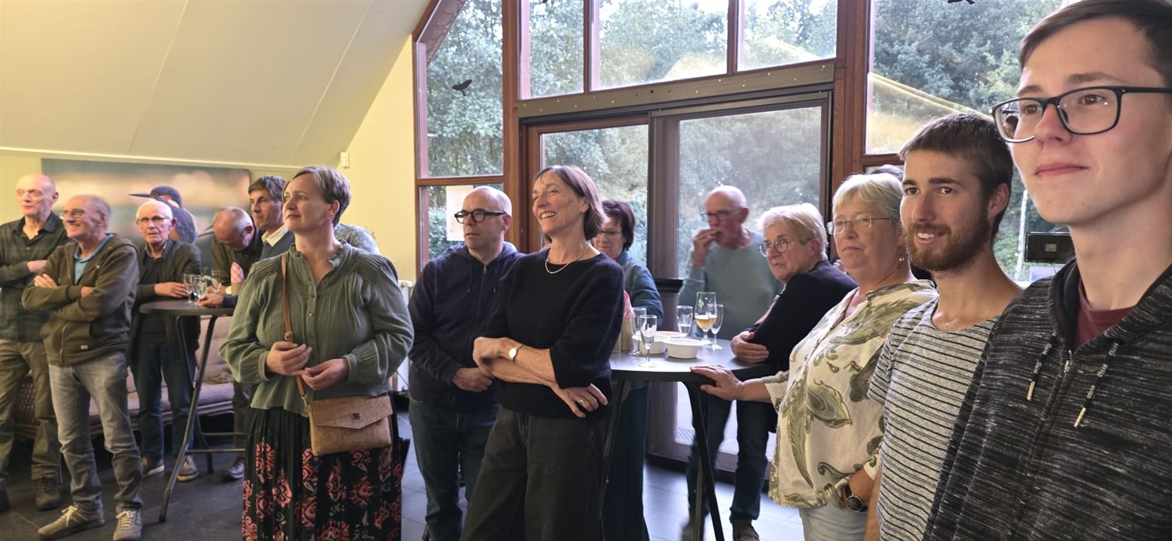 50 vrijwilligers kwamen samen in bezoekerscentrum De Wulp, waar ze door het bestuur letterlijk en figuurlijk een welverdiende pluim kregen.