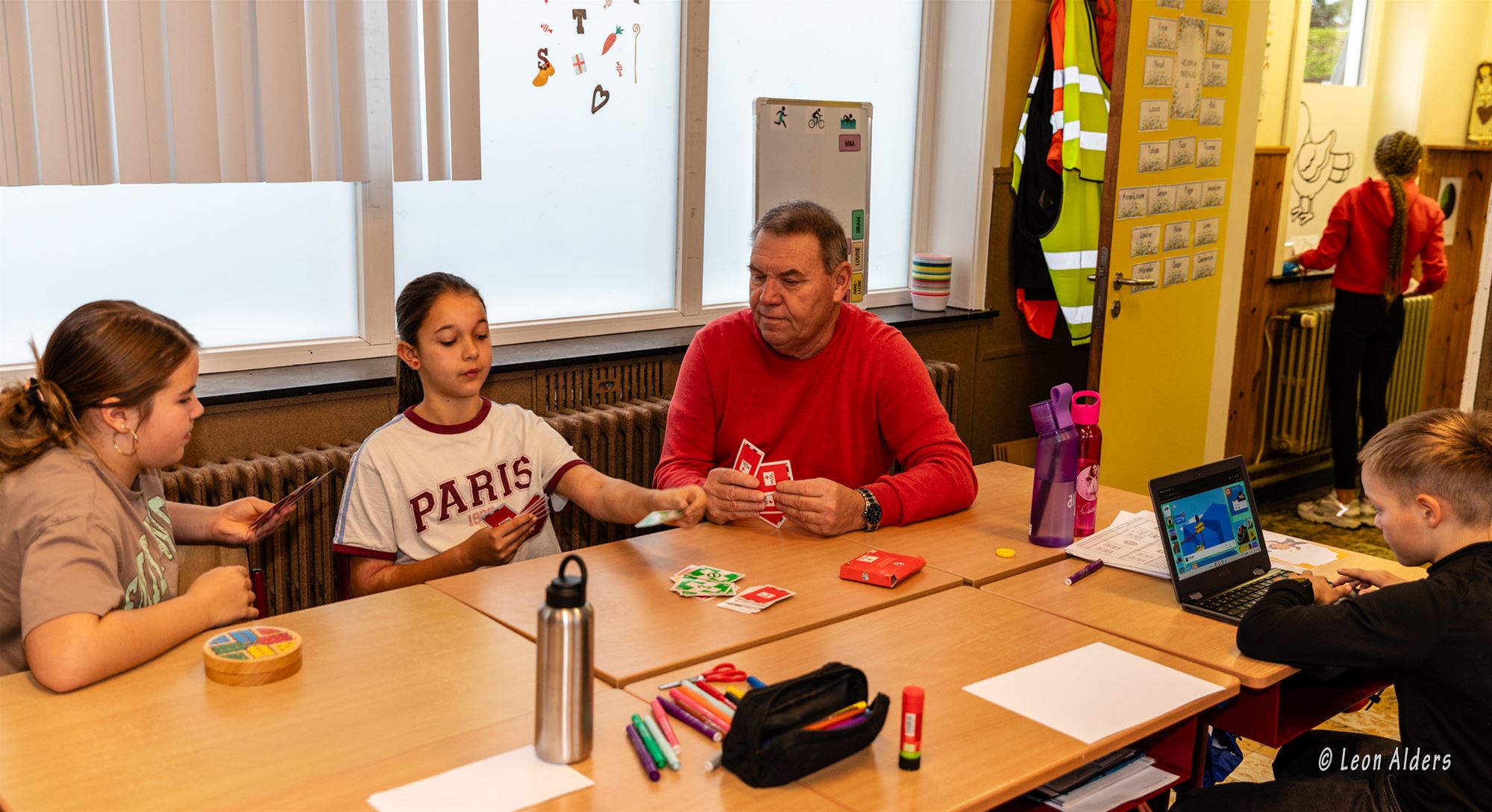 Op de speelplaats werden ze hartelijk ontvangen door directrice Sigi Bielen, waarna ze in kleine groepjes een kijkje mochten nemen in het klasgebeuren. Ze maakten kennis met de juf, speelden samen met de kinderen een spelletje en zagen van dichtbij hoe het er elke dag in de klas aan toe gaat.