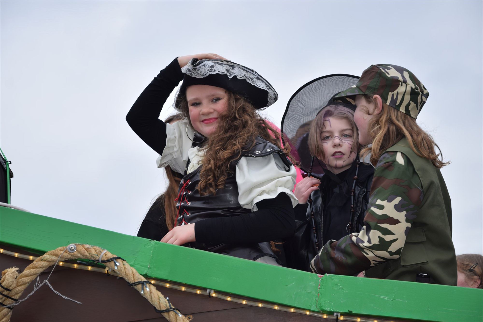 Na deze energieke start was het moment aangebroken om de stoet door de straten van de wijk op gang te trekken. Blikvanger van de namiddag was zonder twijfel de échte carnavalswagen, waarop de ‘zesdes’ een leuk feestje konden bouwen.