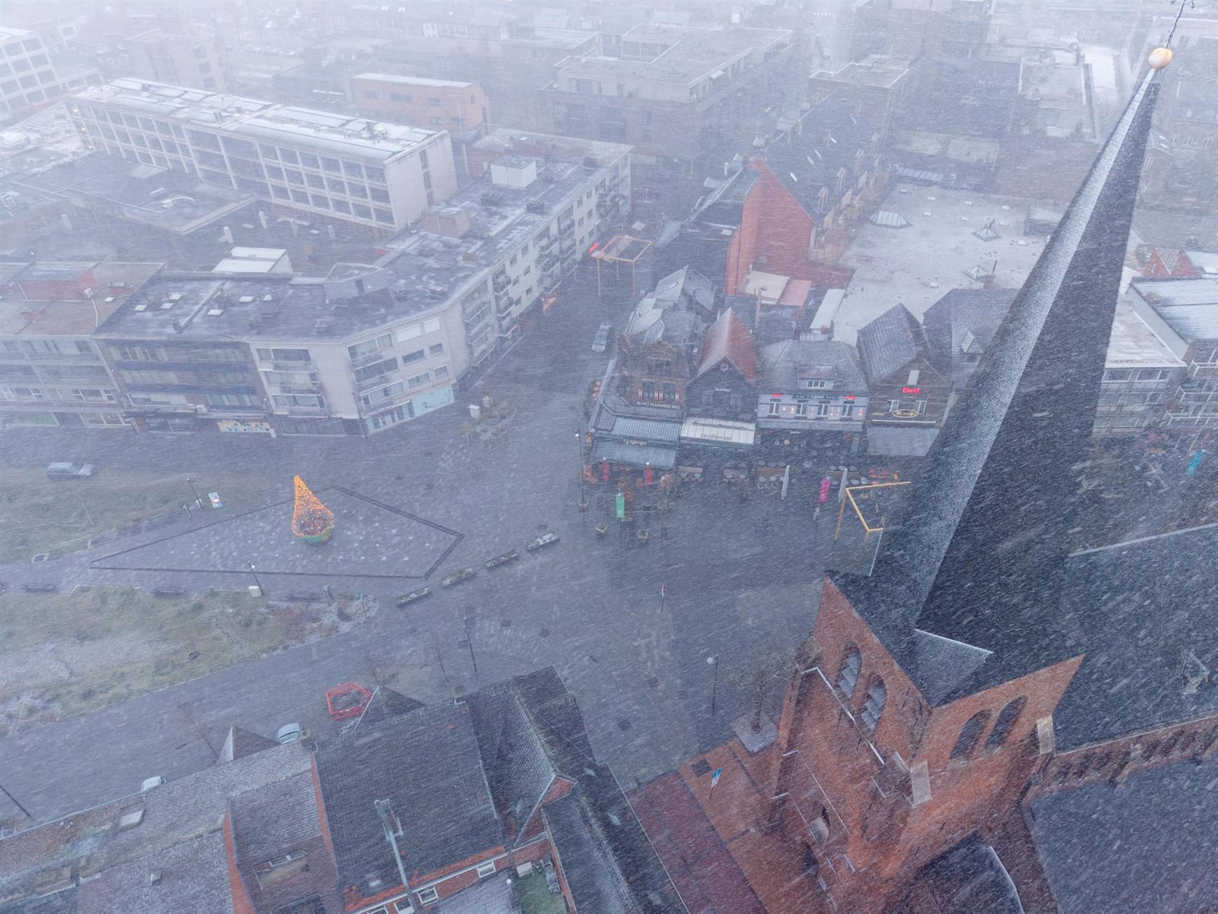 De eerste sneeuwvlokken dwarrelden naar beneden en toverden het centrum van Neerpelt om tot een winters decor. Het leverde meteen ook prachtige beelden op: daken die langzaam wit kleuren, straten in zachte tinten en een Marktplein dat er plots helemaal anders uitzag.