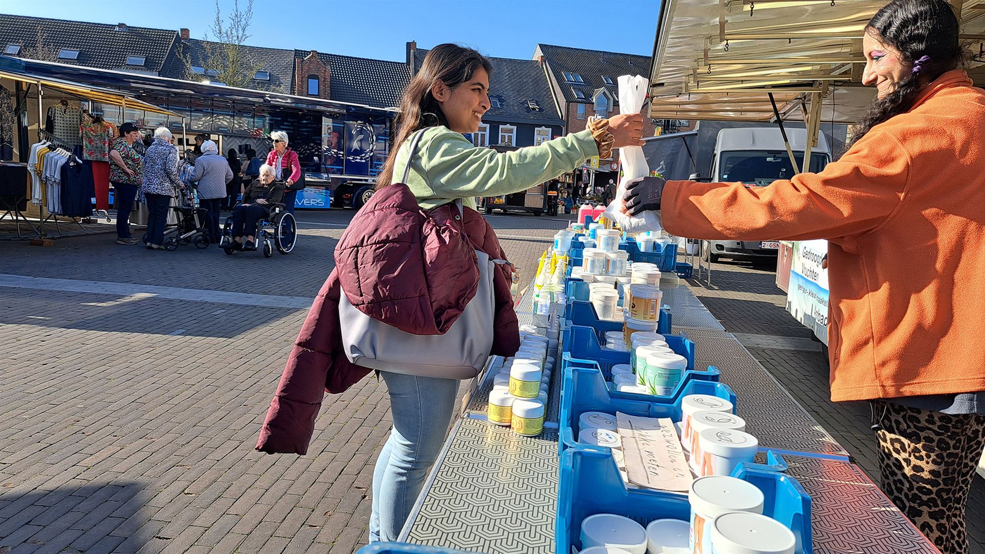 wekelijkse donderdagmarkt helemaal open met dit mooie weer. Bezoekers kunnen er sinds kort nóg meer keuze vinden, want het marktaanbod is uitgebreid met een