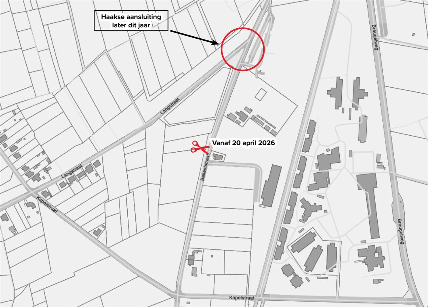 Ballaststraat – tussen de Kapelstraat en de Langstraat – binnenkort geweerd. De maatregel is een uitvoering van een beslissing van de gemeenteraad van 26 maart 2026.